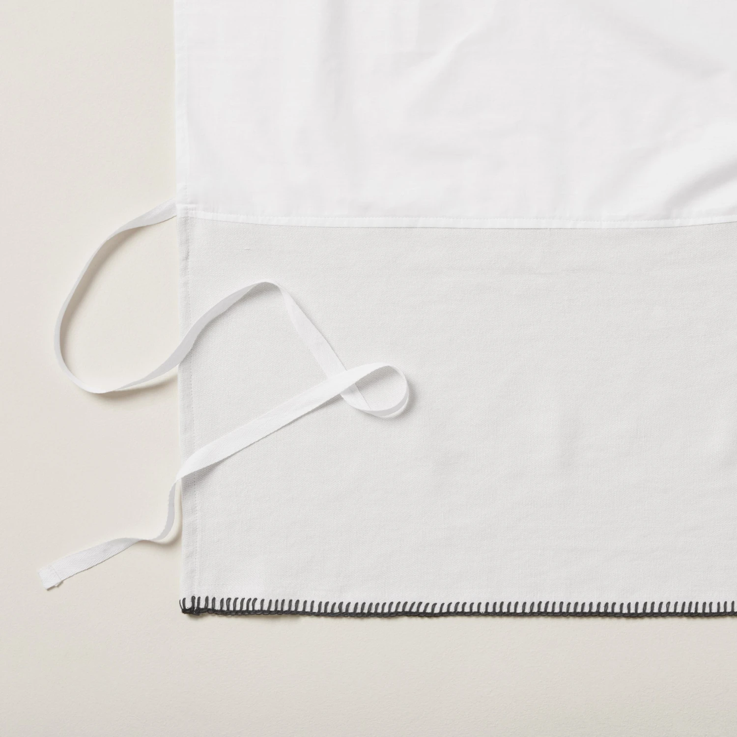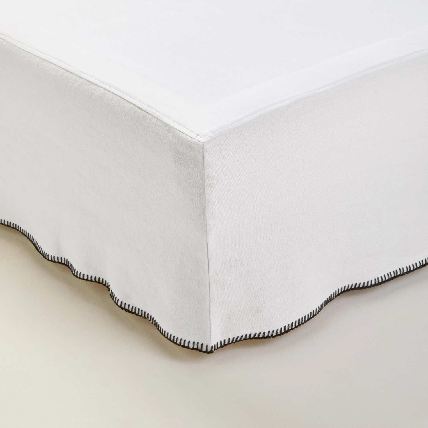Le cache-sommier Nino, en lin lavé épais orné d’un feston noir se décline dans un blanc immaculé et ne manque pas de charme naturel !