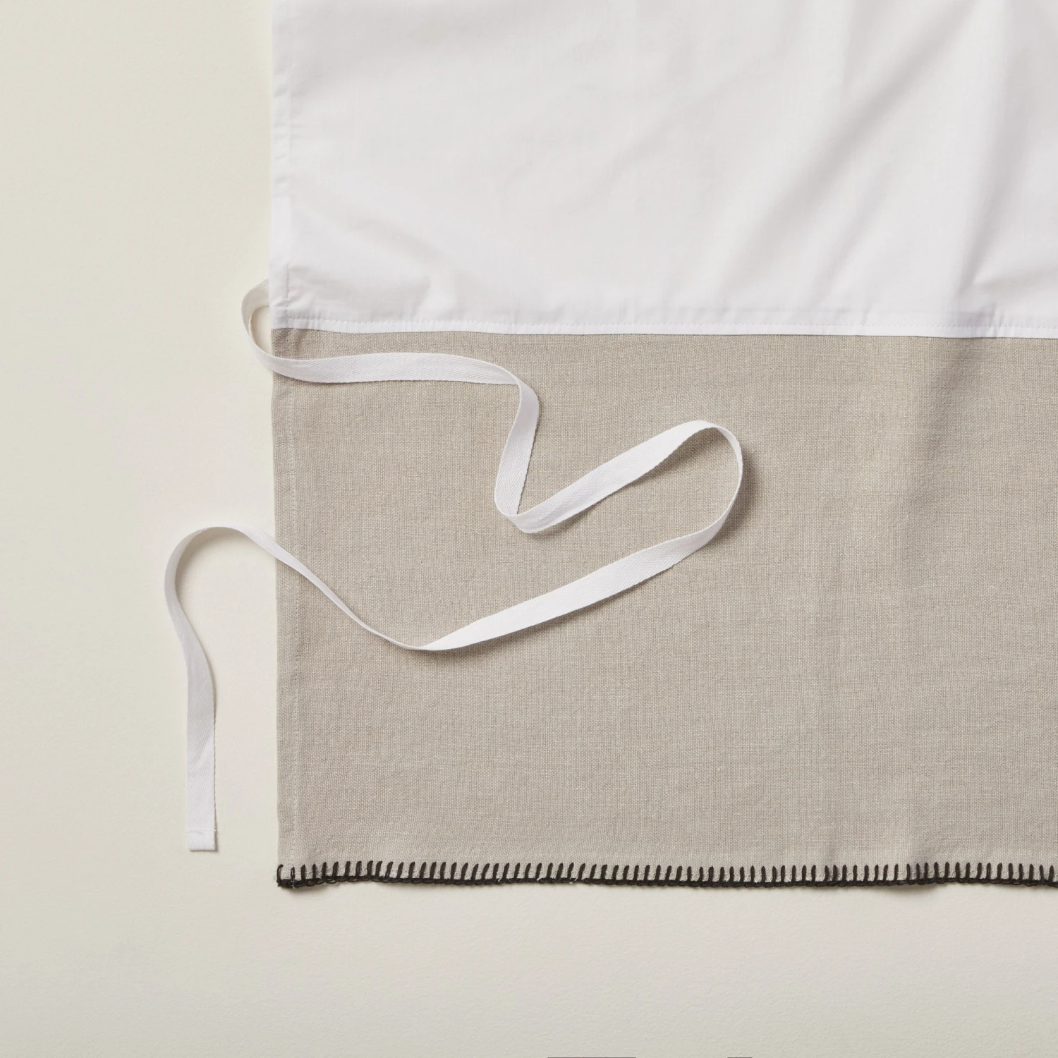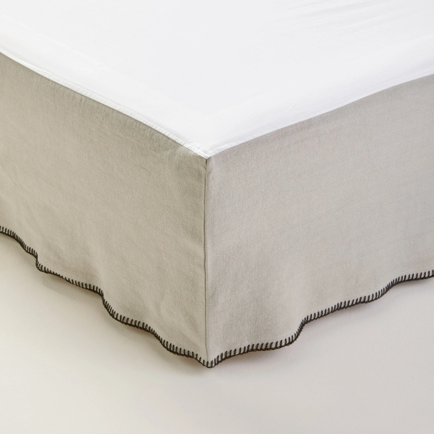 Le cache-sommier Nino, en lin lavé épais orné d’un feston noir se décline dans une teinte beige intemporelle et ne manque pas de charme naturel !