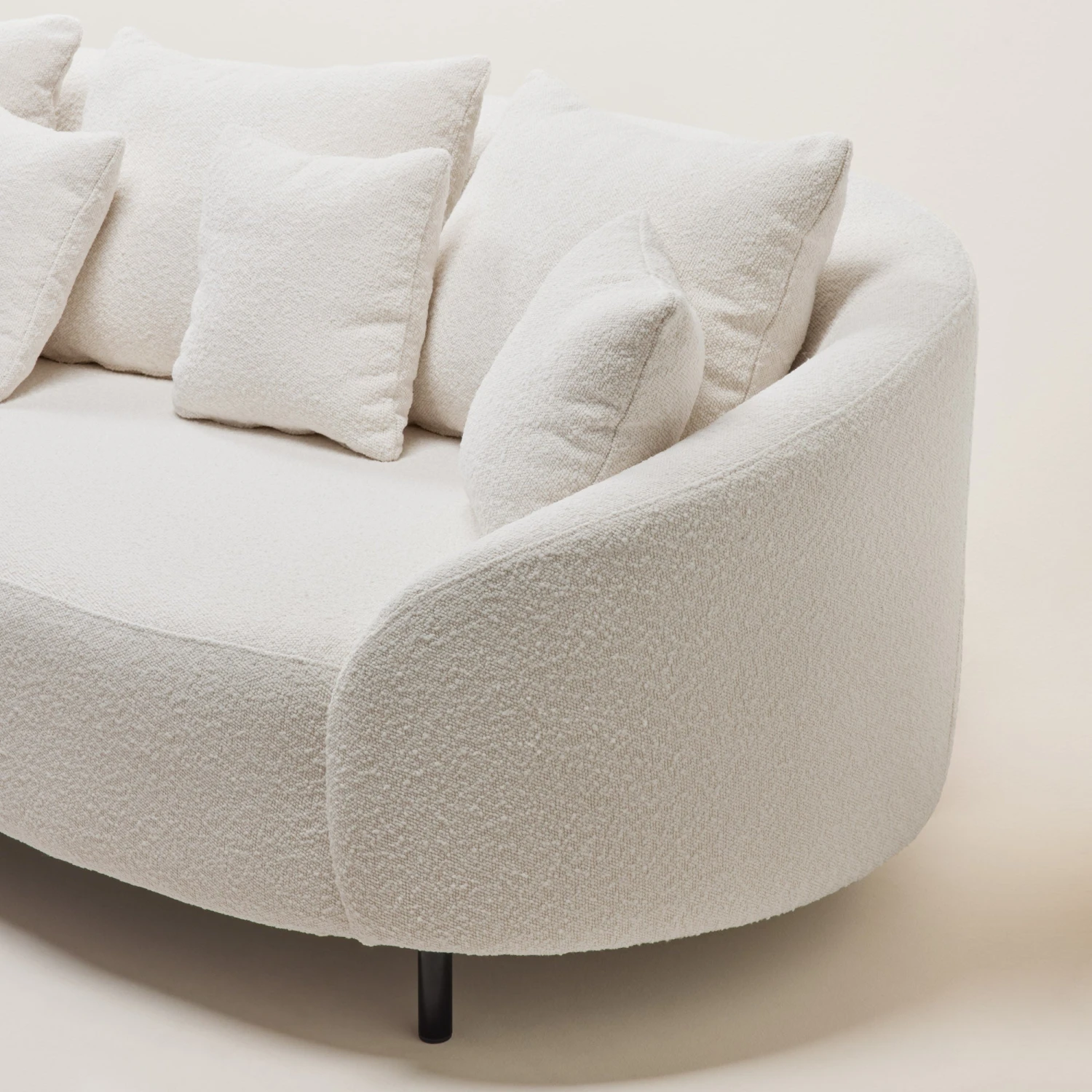 Courbes enveloppantes et réconfortantes, bouclette à la douceur indéniable, le canapé 3 places Julika s’impose comme l’un des véritables coups de cœur de notre collection.