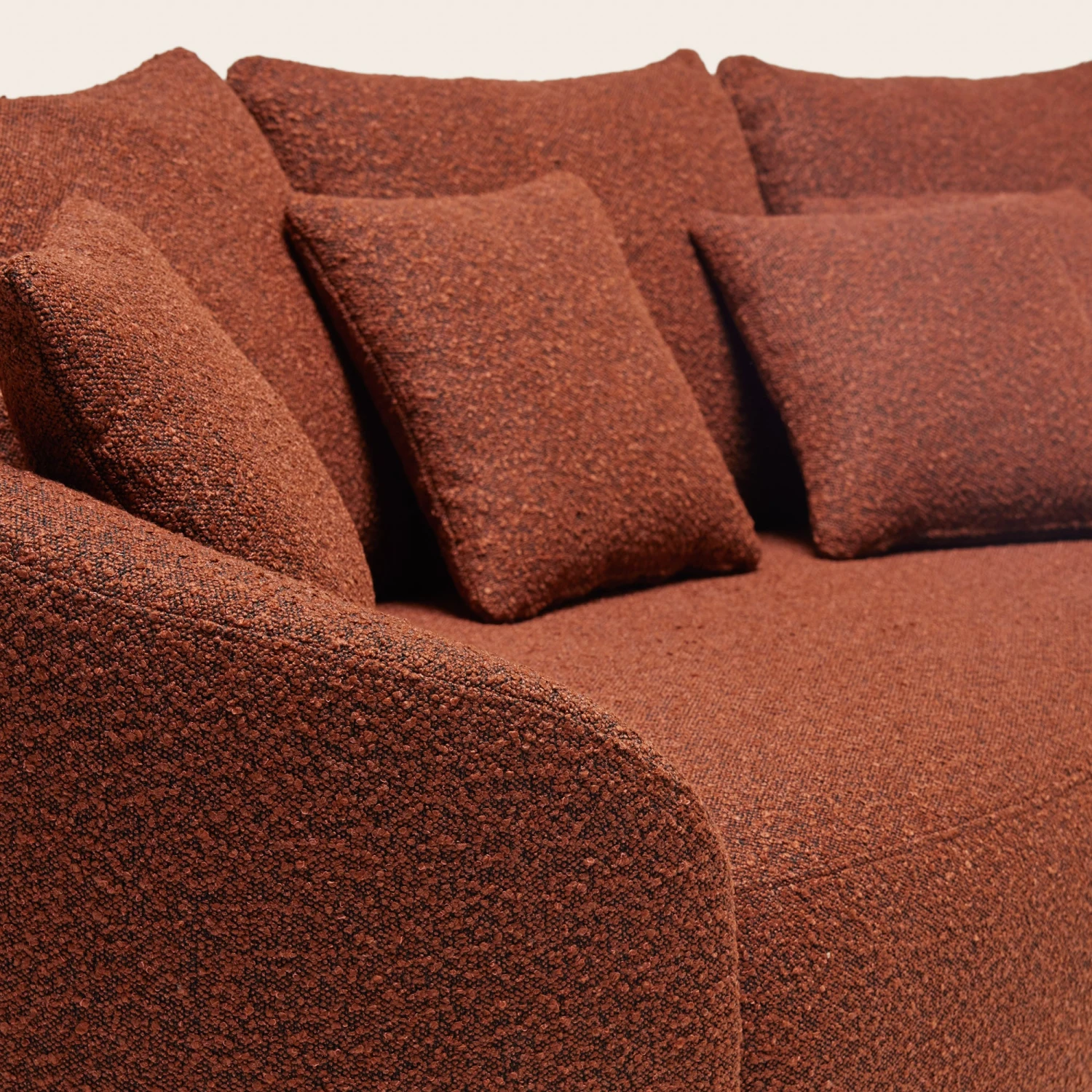 Courbes enveloppantes et réconfortantes, bouclette à la douceur indéniable, le canapé 3 places Julika s’impose comme l’un des véritables coups de cœur de notre collection. Il se réinvente en orange brique pour la nouvelle saison.