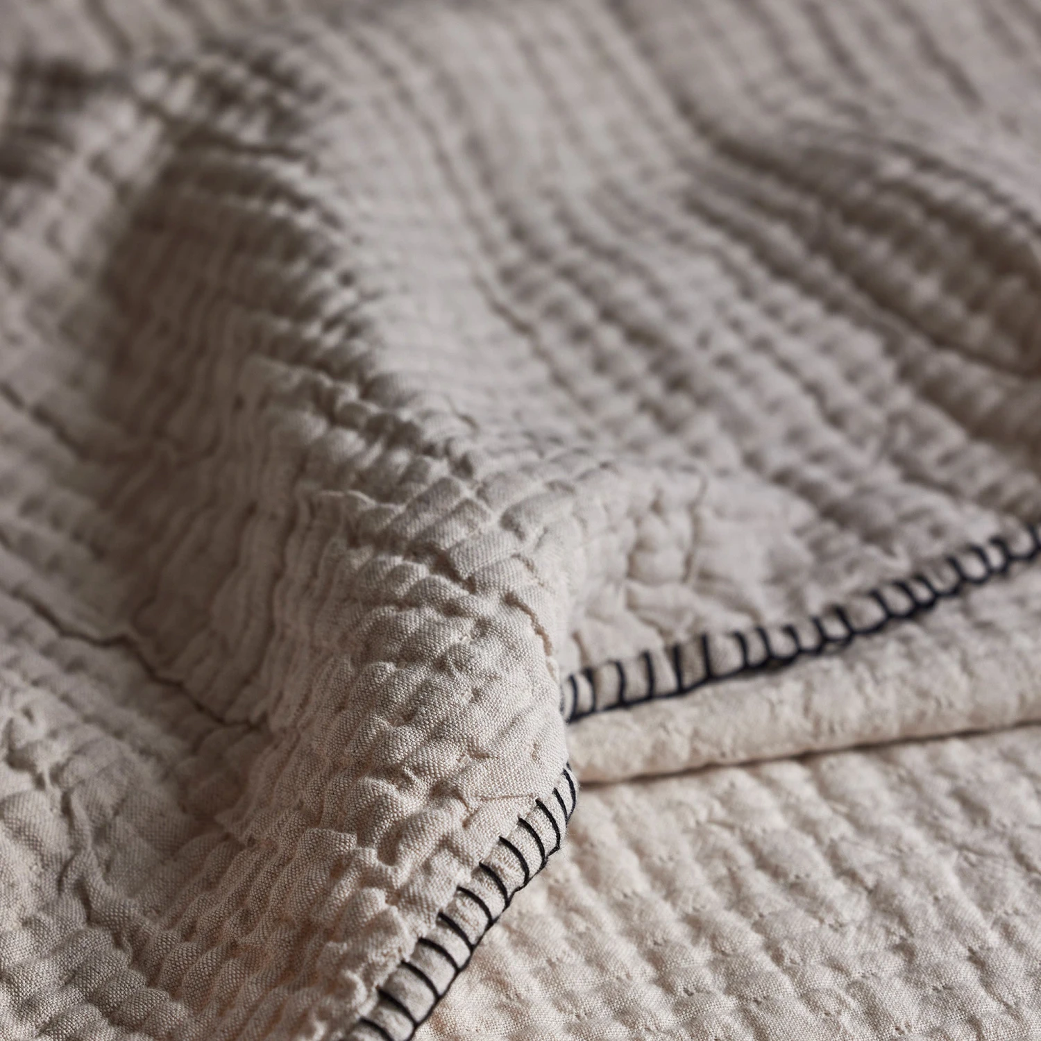Couvre-lit ILARIO Naturel Et Feston Noir
