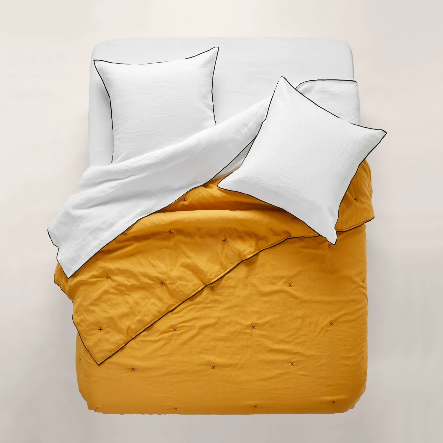 Couvre-lit Matelassé CARLINA Ocre Et Bourdon Noir