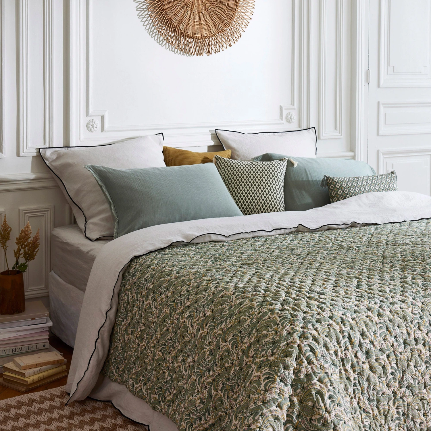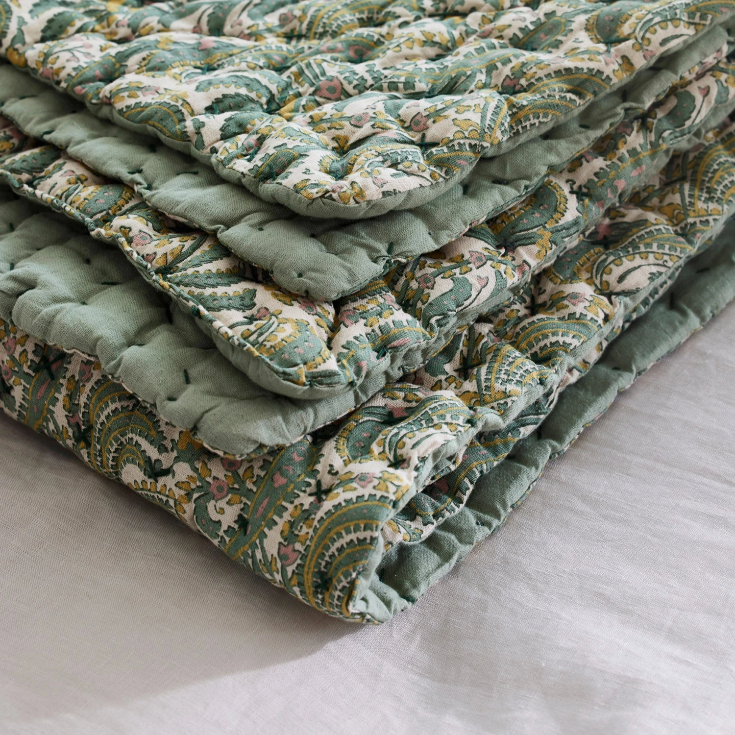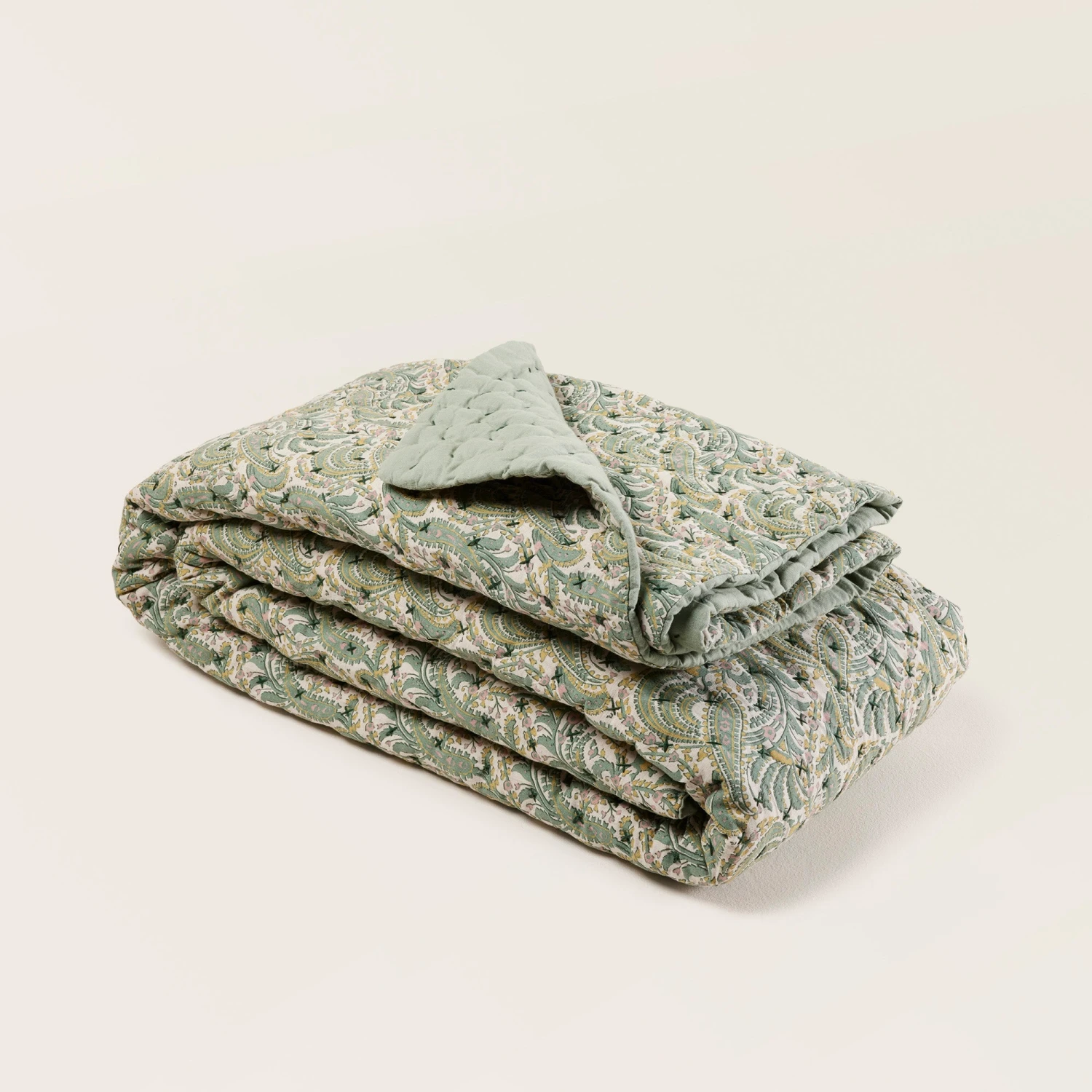 Couvre-lit Matelassé PADMA Vert De Gris Et écru