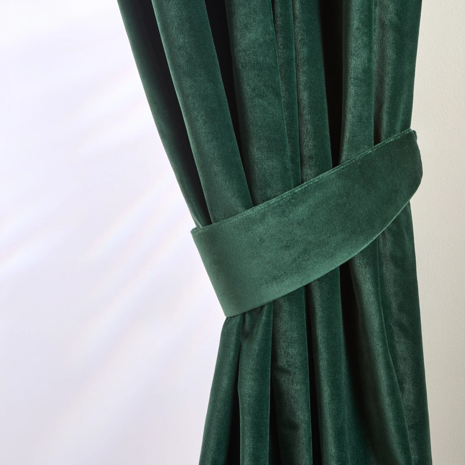 L’embrasse Dario vert mélèze nous plaît par sa forme généreuse mise en valeur par son velours. Pour maintenir vos rideaux ouvert avec allure.