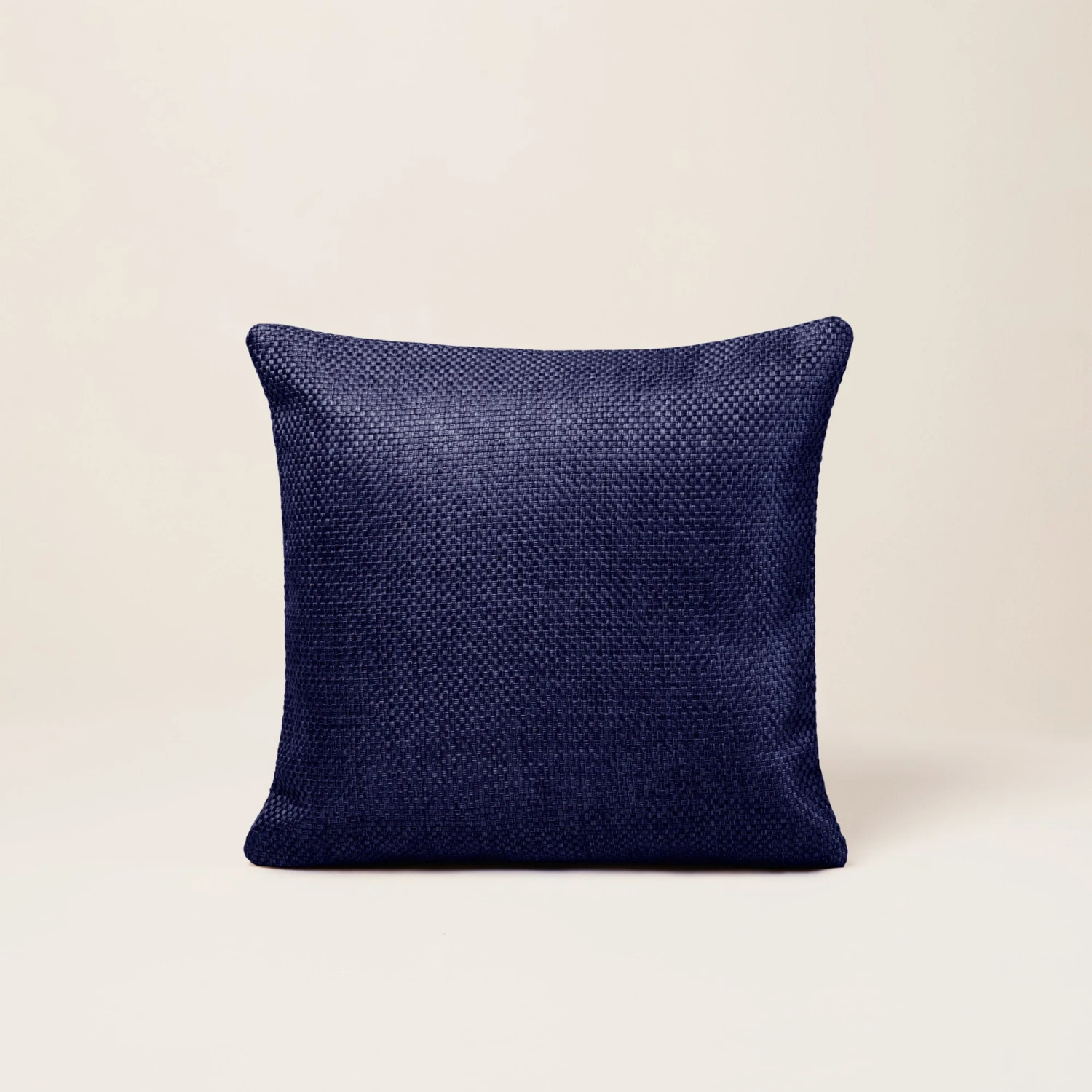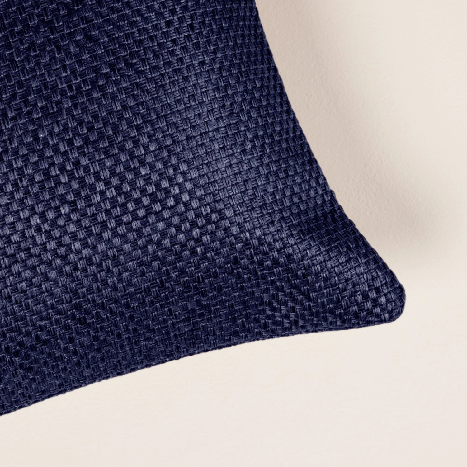 La housse de coussin Coconut séduit par son tissage légèrement satiné d’un bleu de minuit intense.