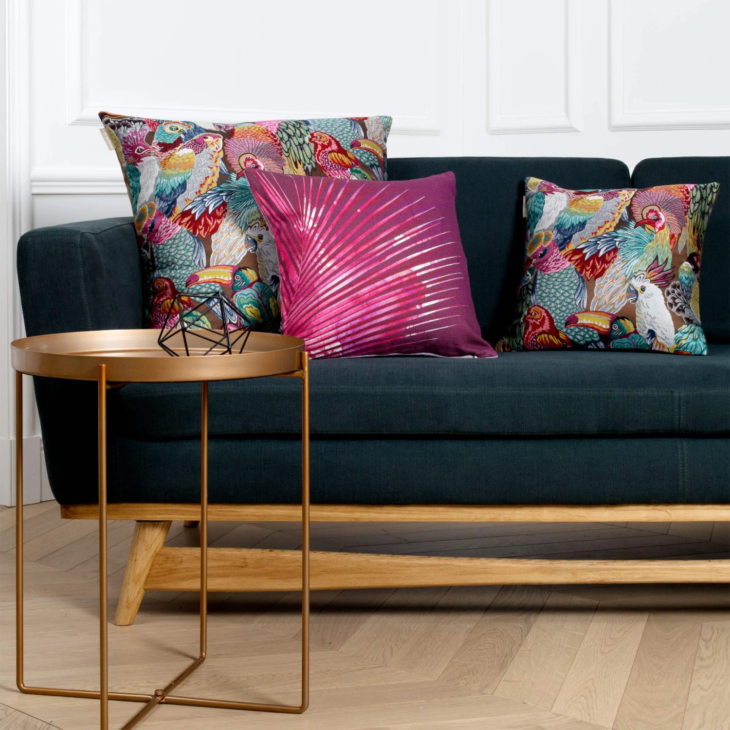 Entièrement revêtue d’un jacquard effet tapisserie , la housse de coussin Jungle birds donne de la singularité à votre intérieur. Les perroquets en seront la vedette incontestable.