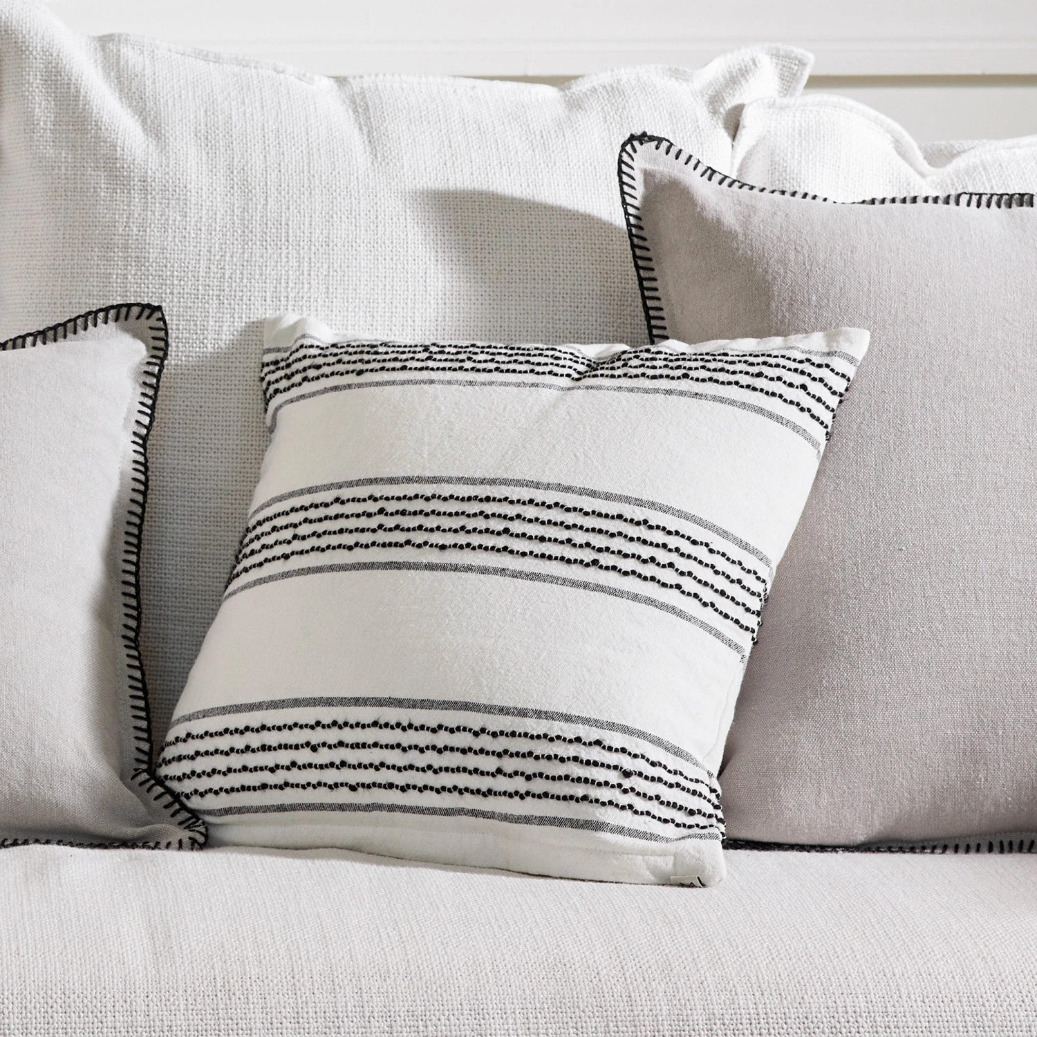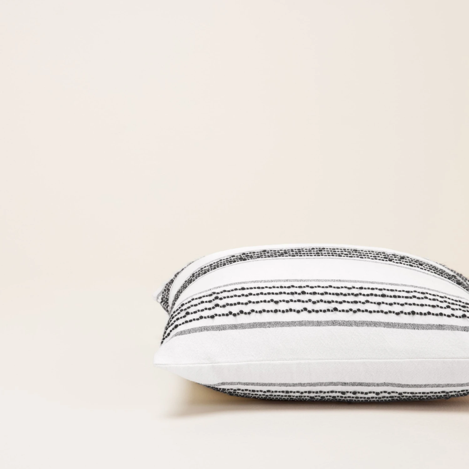 Avec son tissage d’un blanc immaculé réhaussé de fines rayures, la housse de coussin Malay donnera un air de vacances à votre intérieur.