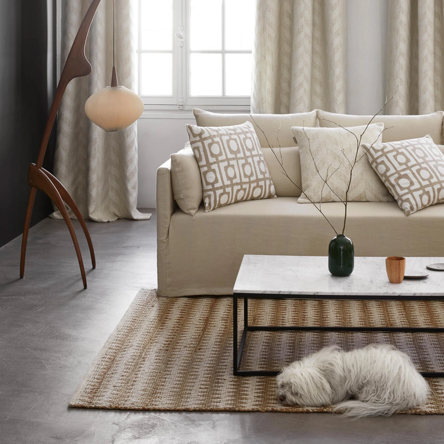C’est dans la beauté du tissage au style naturel que se dessine l’élégant chevron XXL qui rend si singulier le motif Tobias.