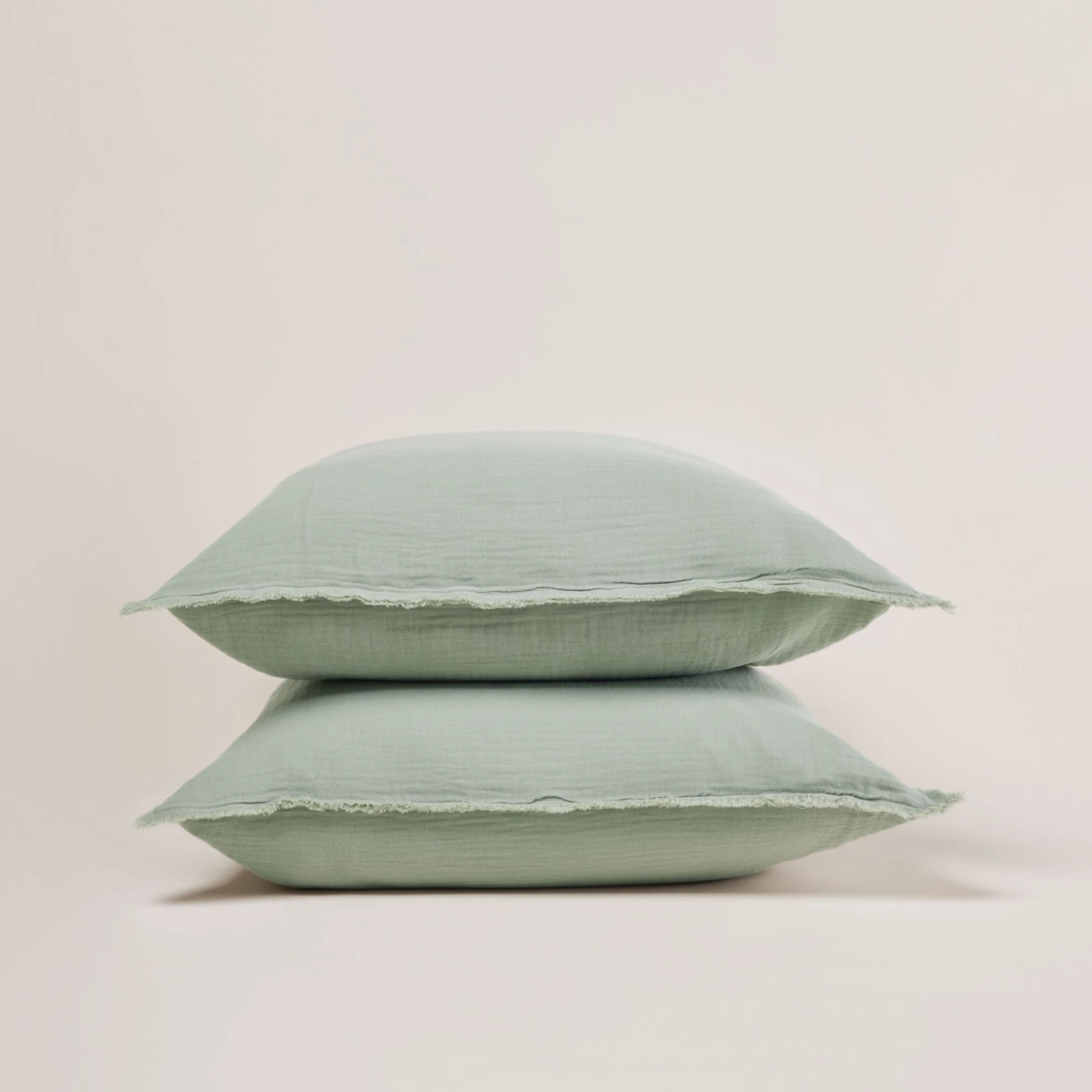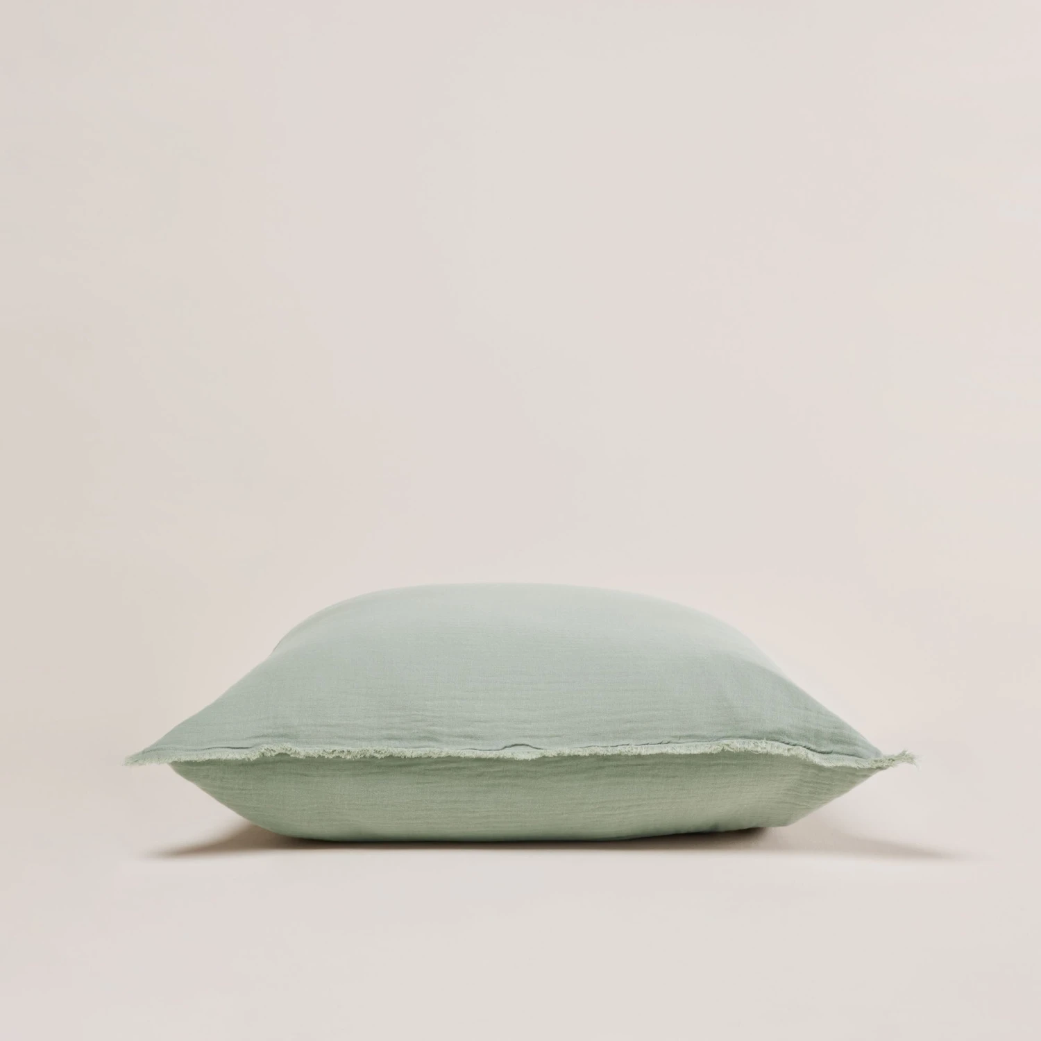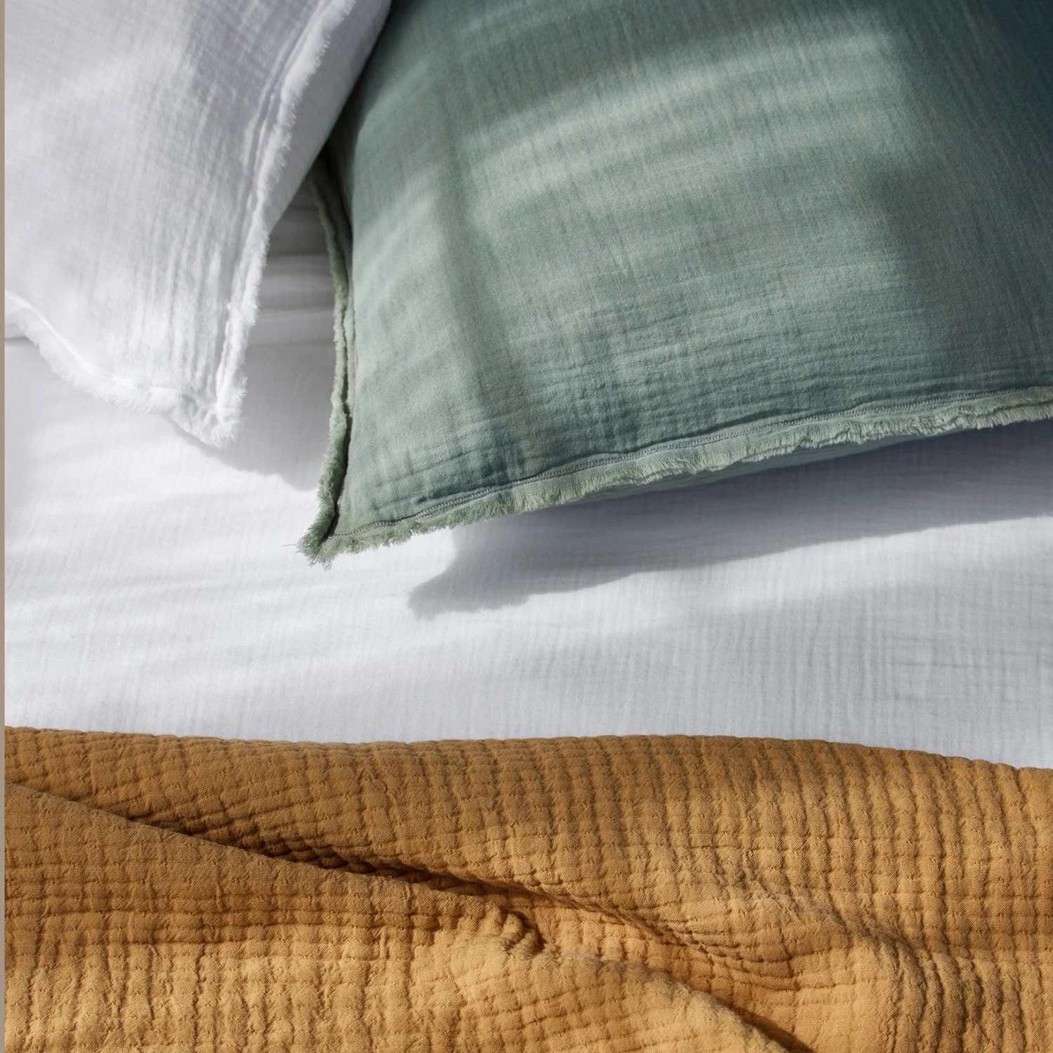 Très agréable au contact de la peau, le linge de lit Lou vert sauge en gaze de coton lavé vous assurera un sommeil réparateur.