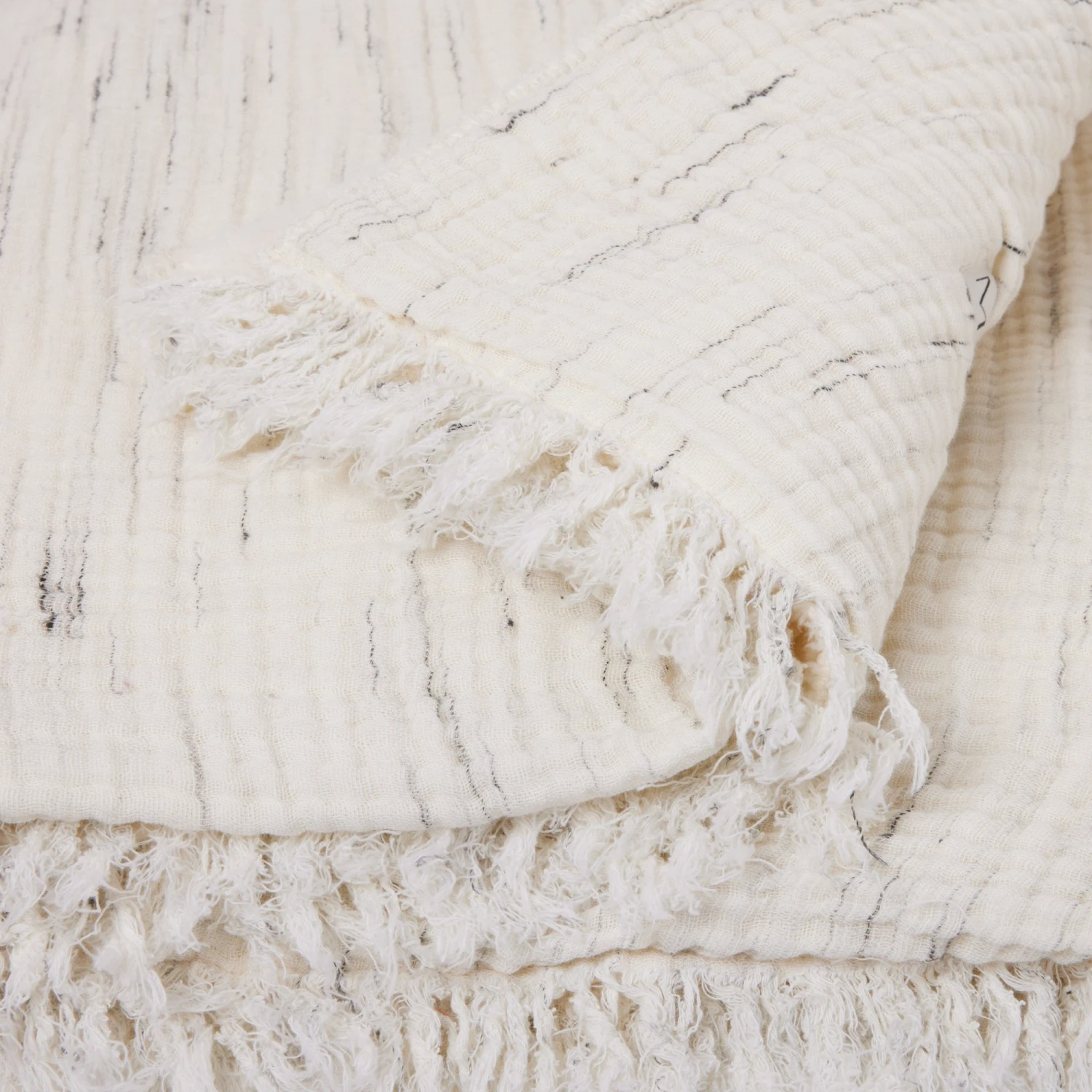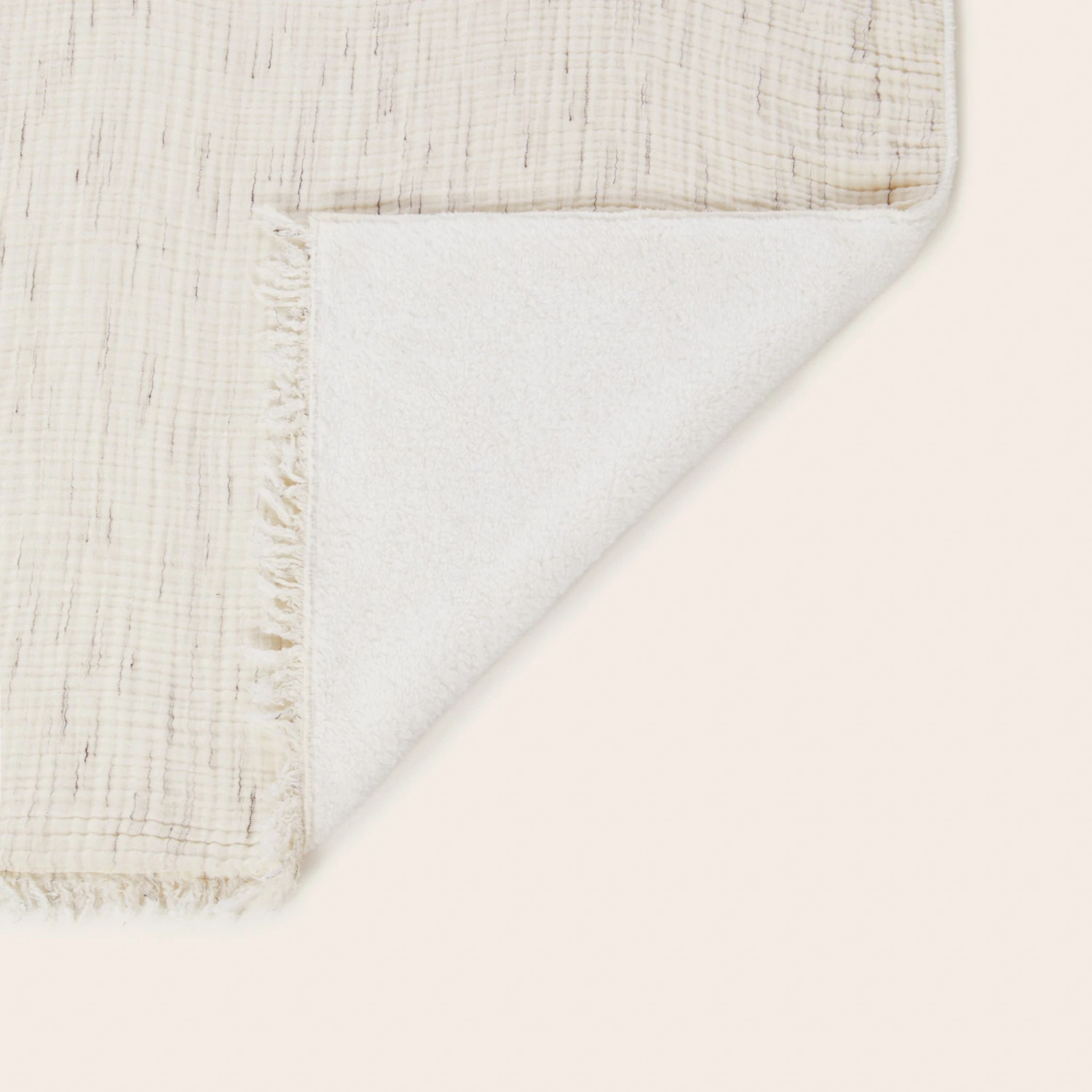 Le plaid Chamauny vous offre un confort absolu pour rester au chaud. Sa délicate gaze de coton marbrée est frangée puis doublée d’une polaire ultra douce pour vous lover.