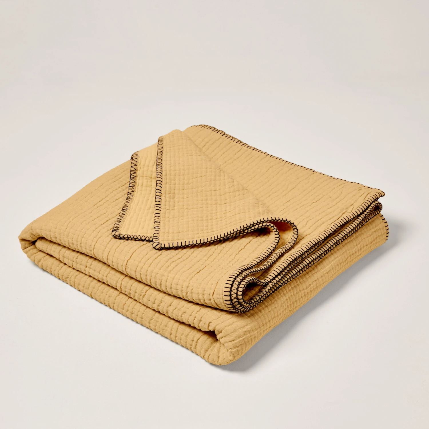 Plaid ILARIO Jaune Maïs Et Feston Noir