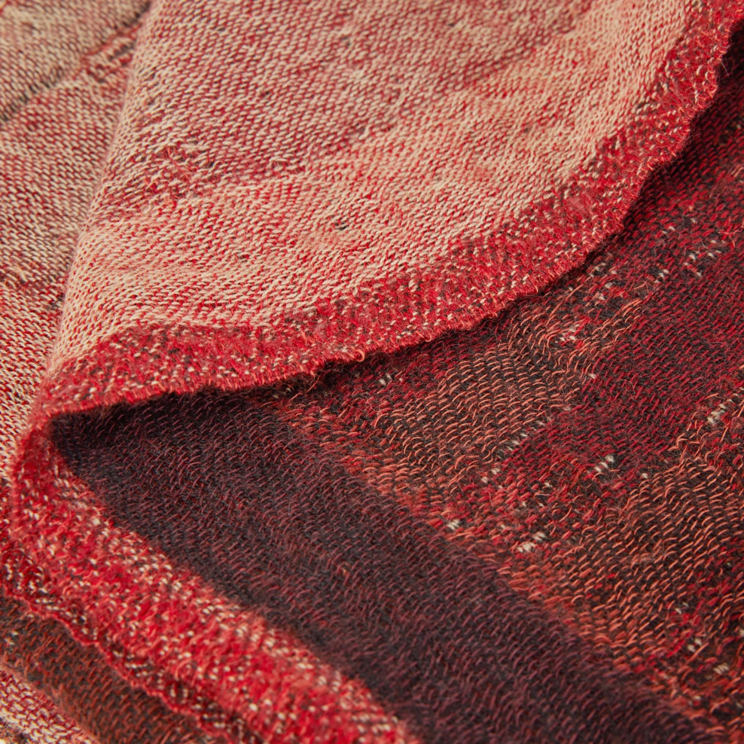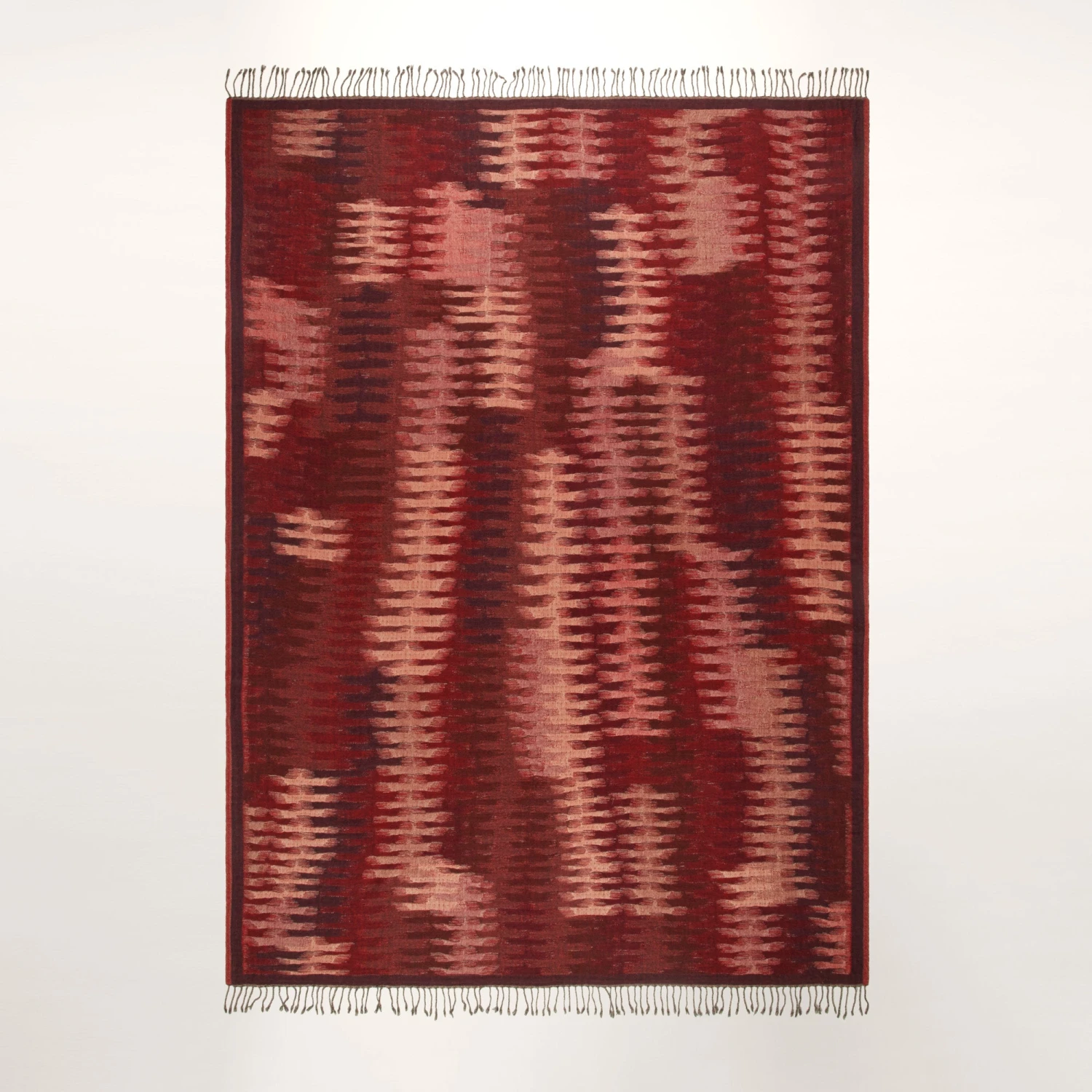 Comme sur une toile abstraite, les couleurs de ce plaid en pure laine se mêlent et se confondent pour former un motif ikaté graphique.