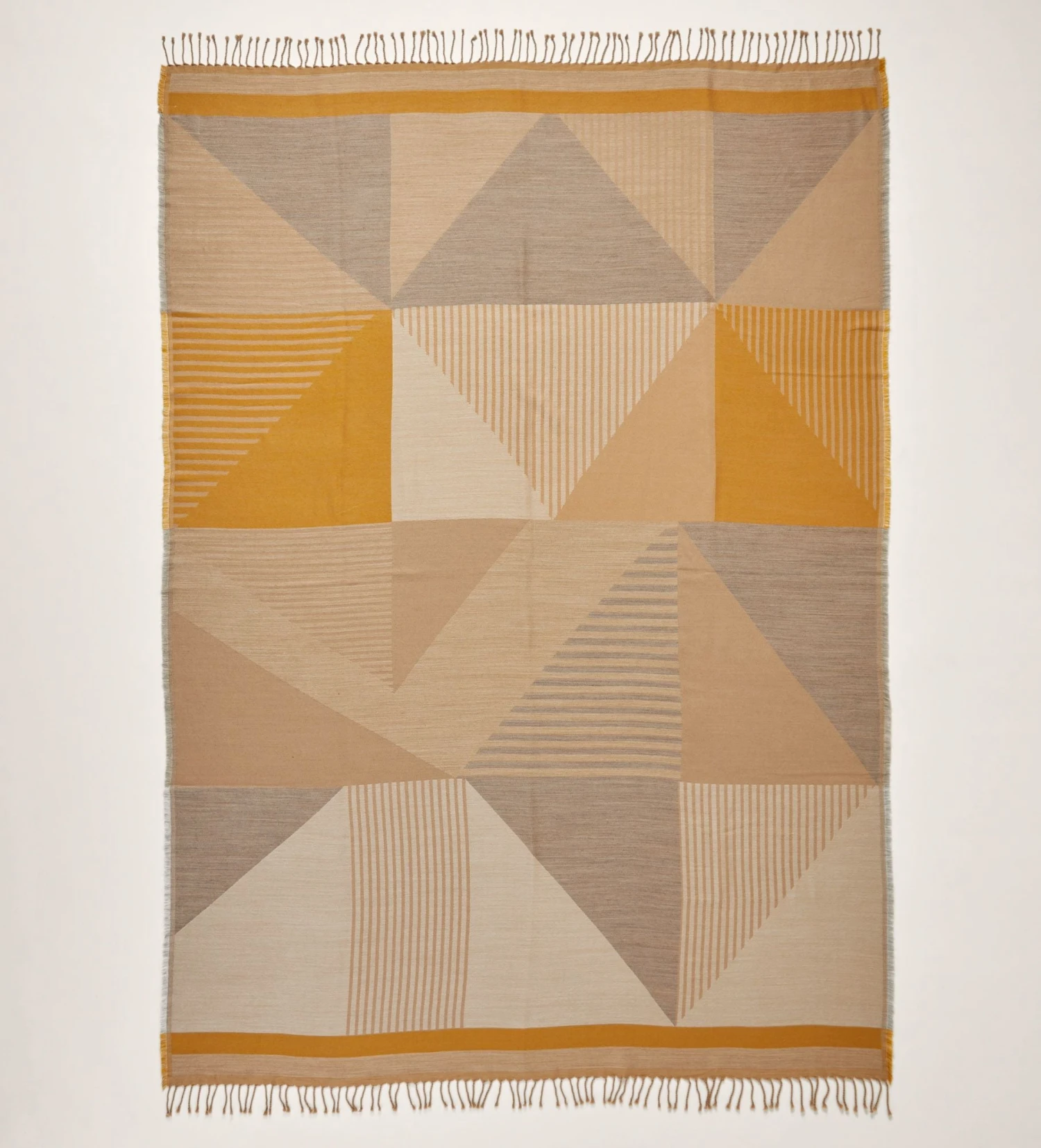 Ce plaid séduit par son accord parfait entre modernité du motif géométrique et coloris nomades chatoyants.