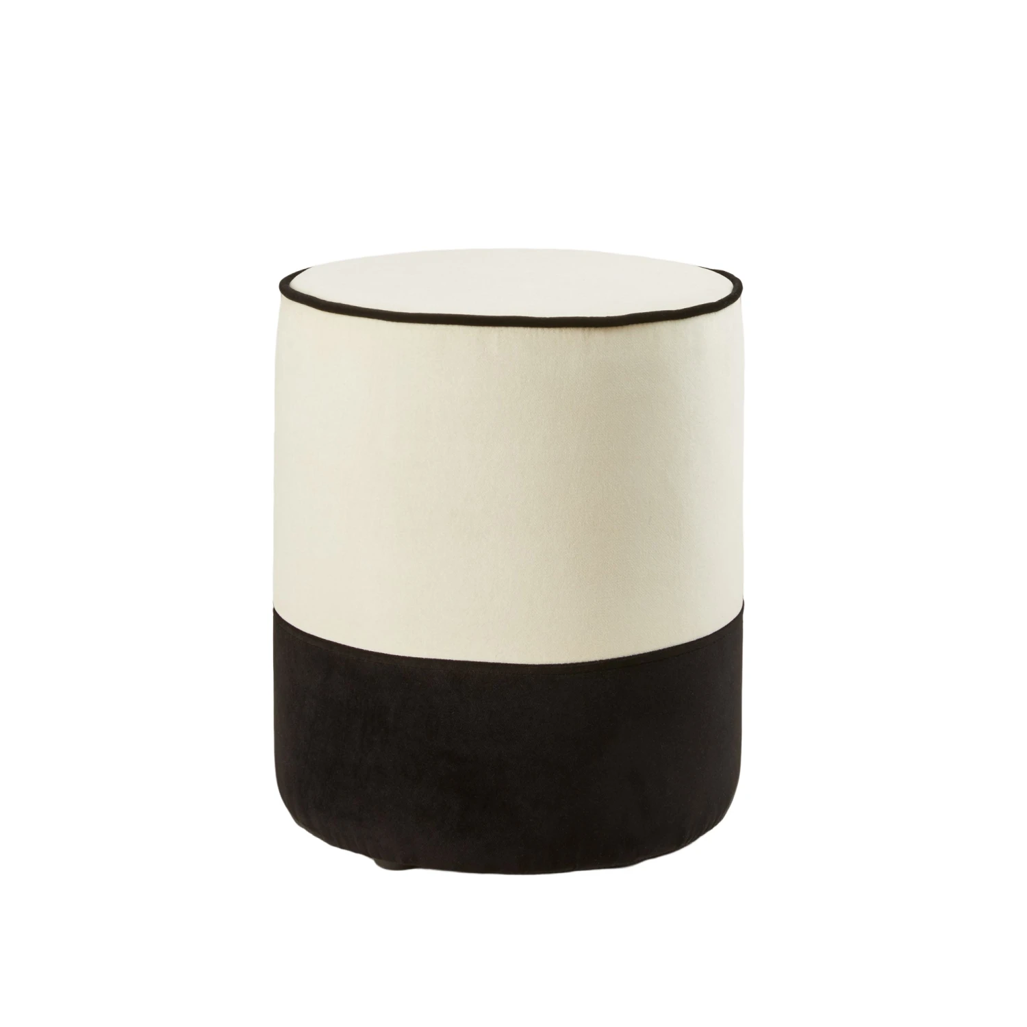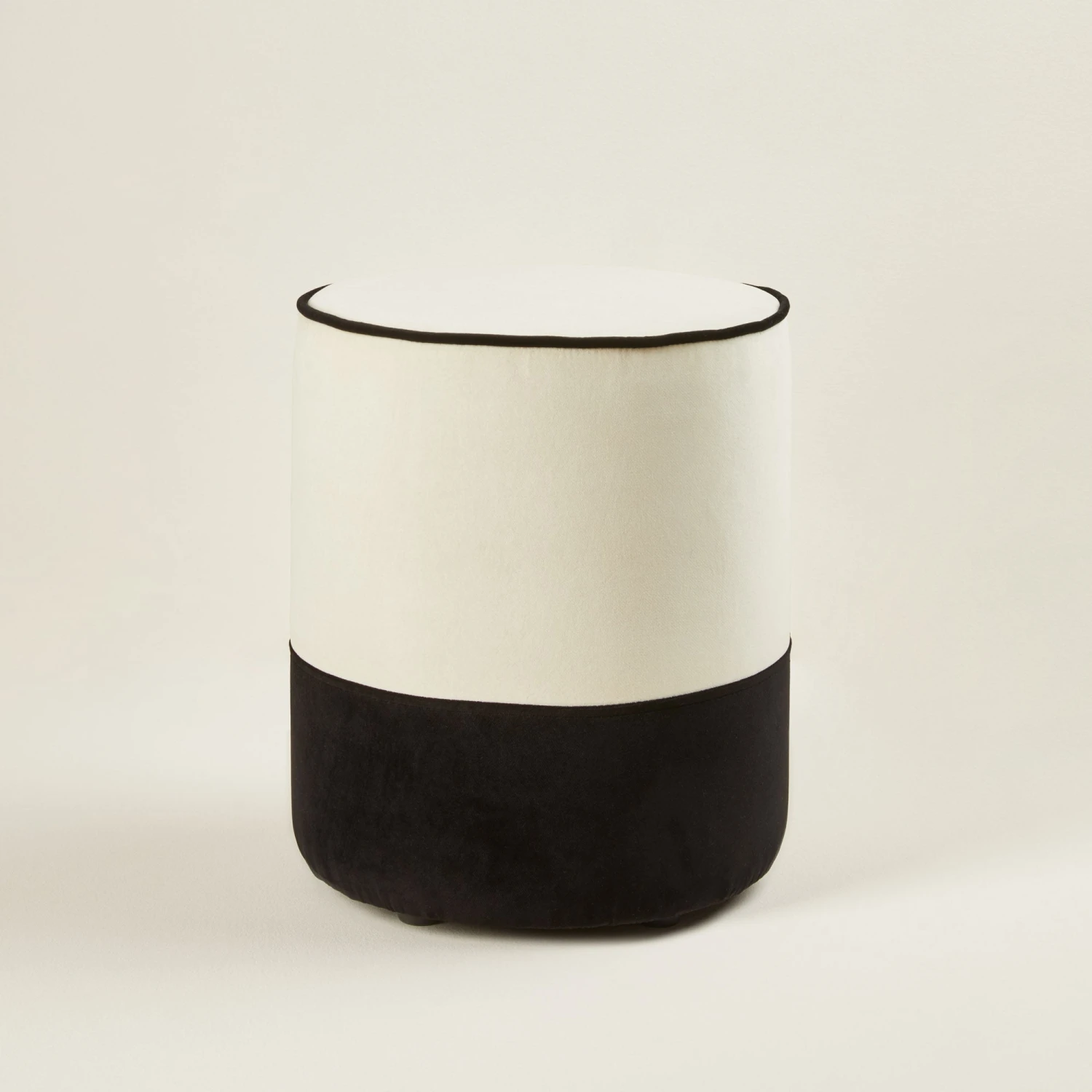 Tapissé d’un velours doux et lumineux, le pouf Noé trouve son caractère dans l’harmonie et le contraste de ses deux teintes : ivoire souligné d’un noir intense.