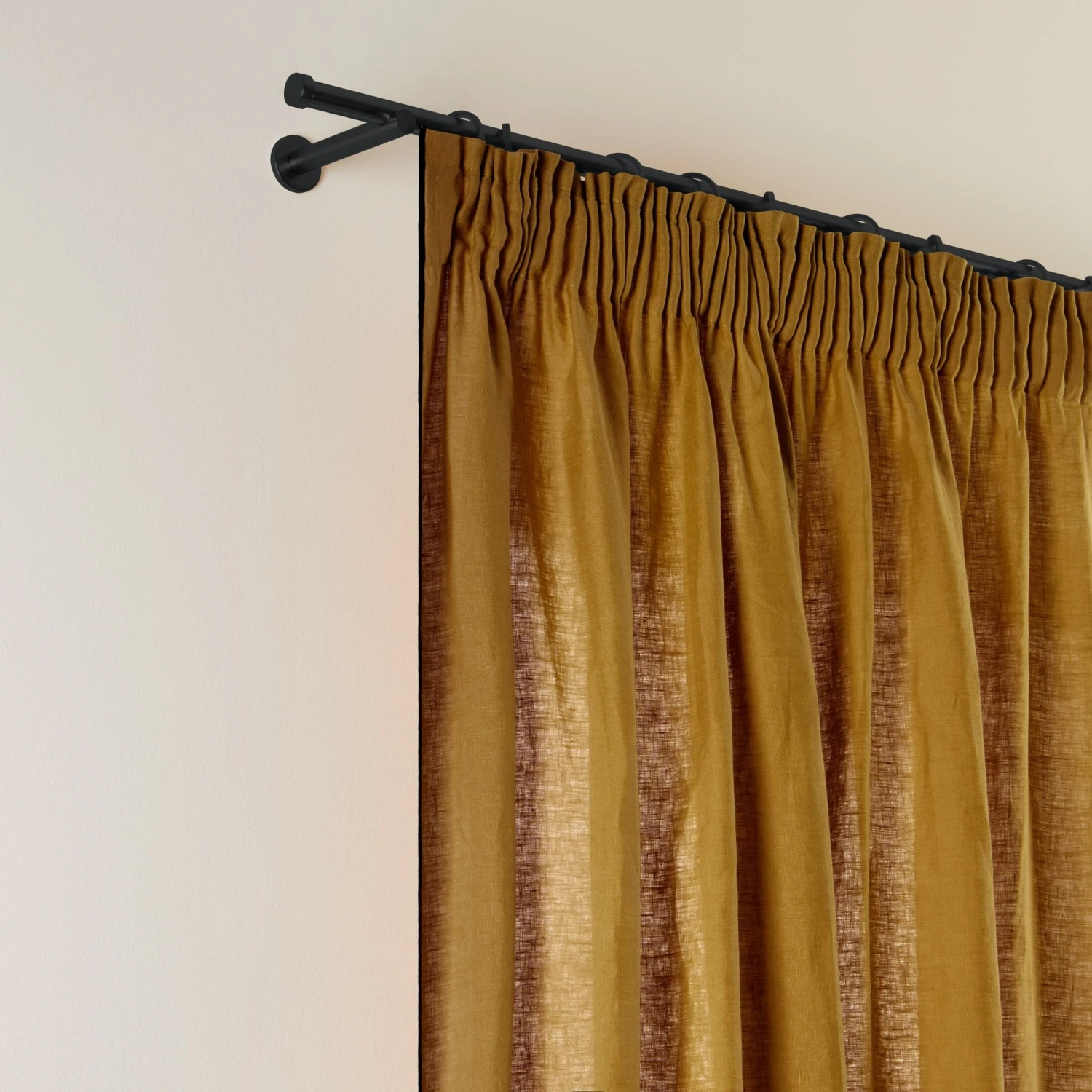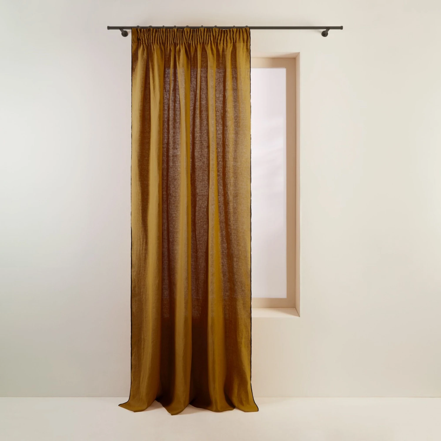 Le rideau à galon fronceur Carlina bronze souligné d’un bourdon noir est beau par son évidente simplicité. Ce rideau en lin léger trouve son charme bohème à travers sa fronce et son plissé délicat.
