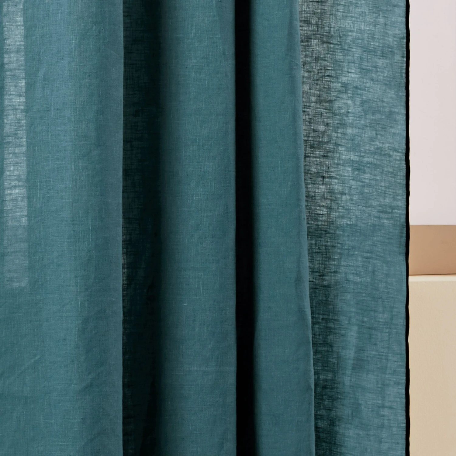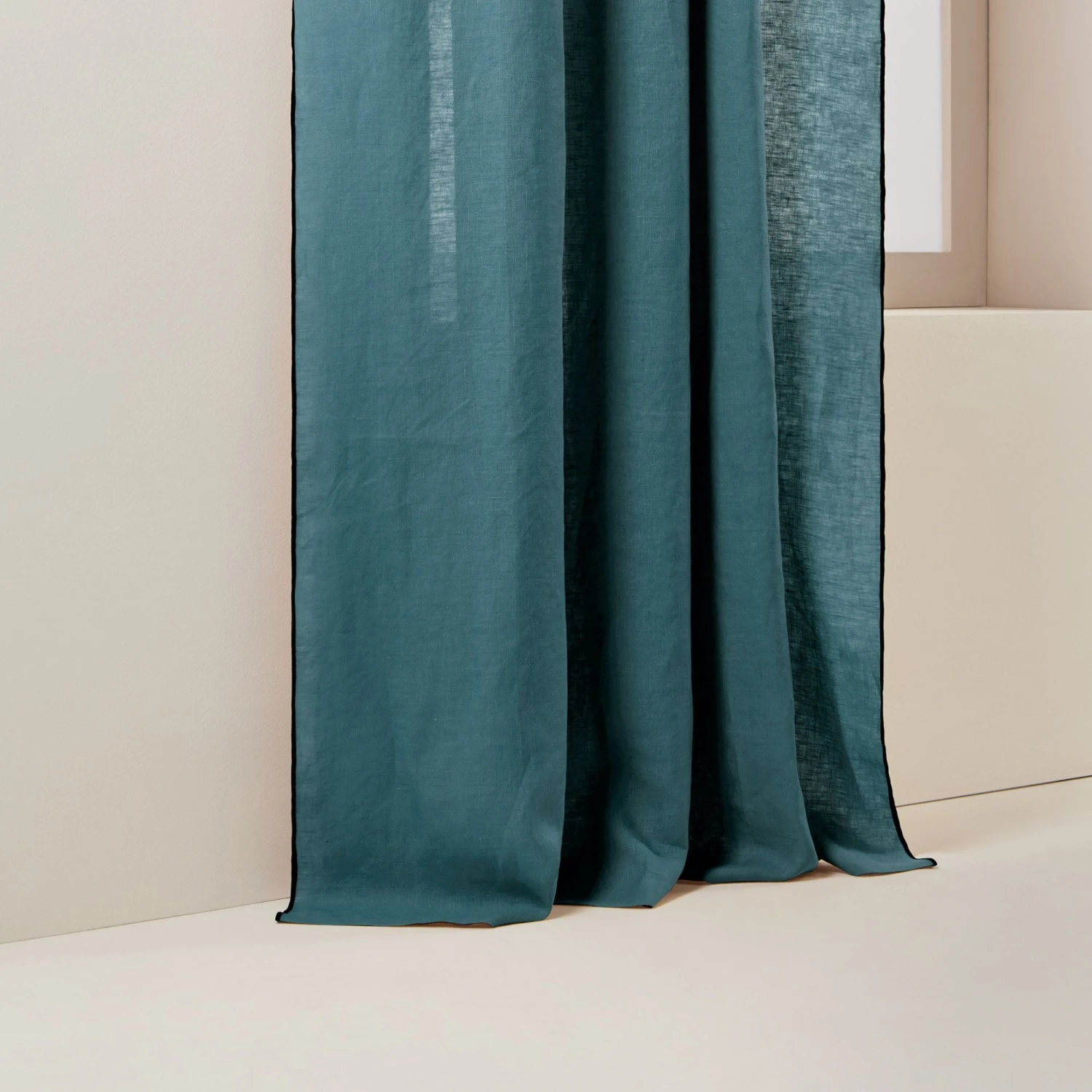 Le rideau à galon fronceur Carlina pétrole souligné d’un bourdon noir est beau par son évidente simplicité. Ce rideau en lin léger trouve son charme bohème à travers sa fronce et son plissé délicat.