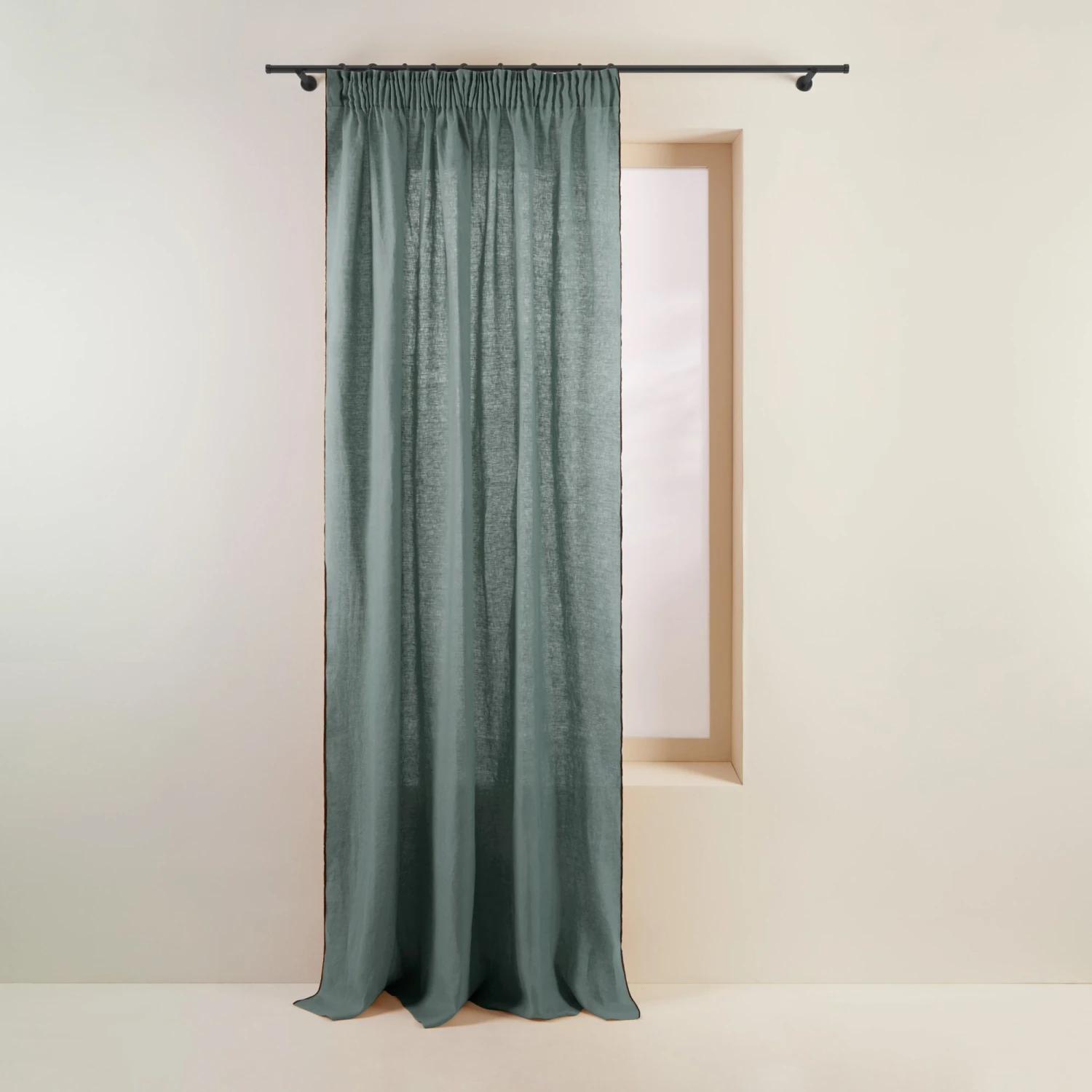 Le rideau à galon fronceur Carlina vert de gris souligné d’un bourdon noir est beau par son évidente simplicité. Ce rideau en lin léger trouve son charme bohème à travers sa fronce et son plissé délicat.