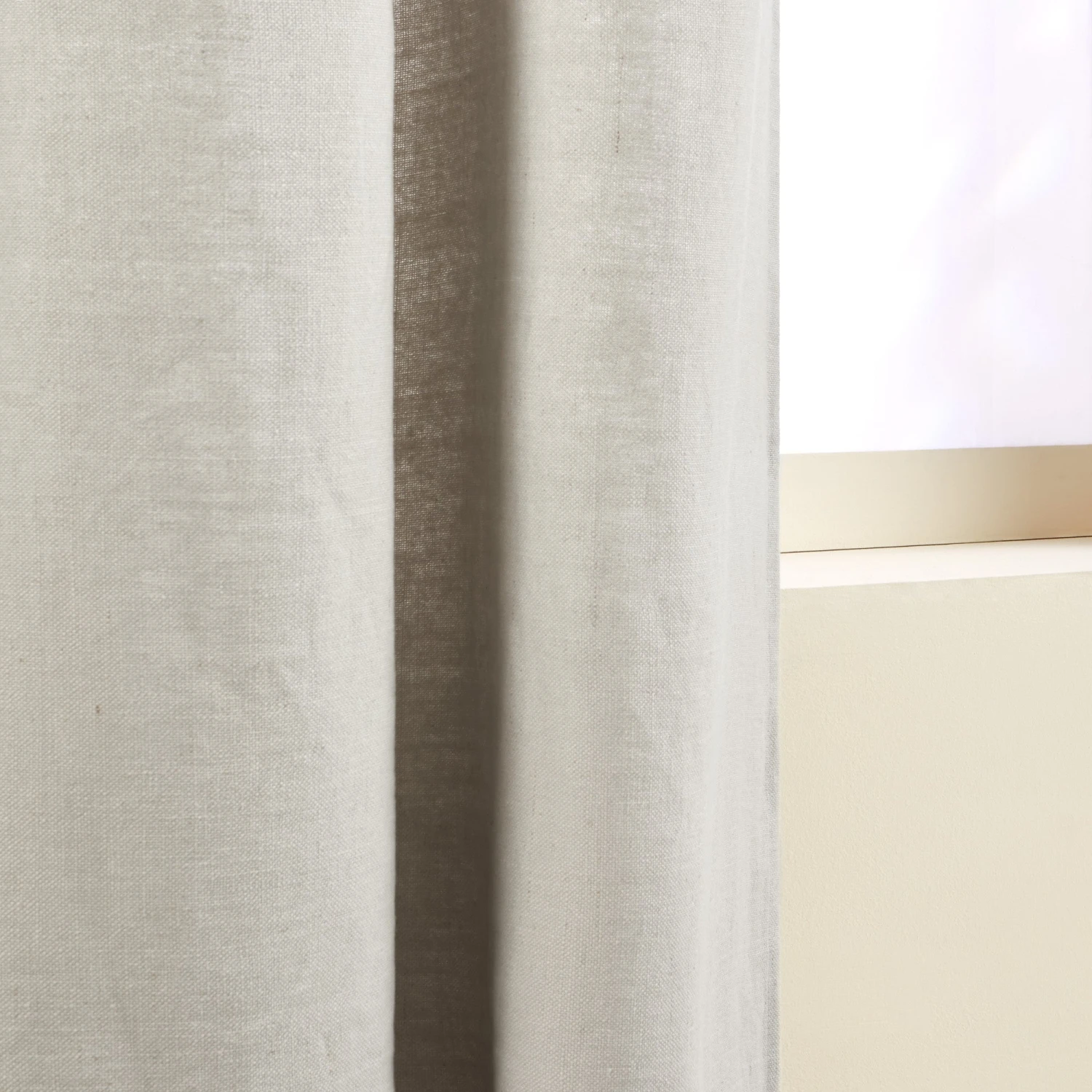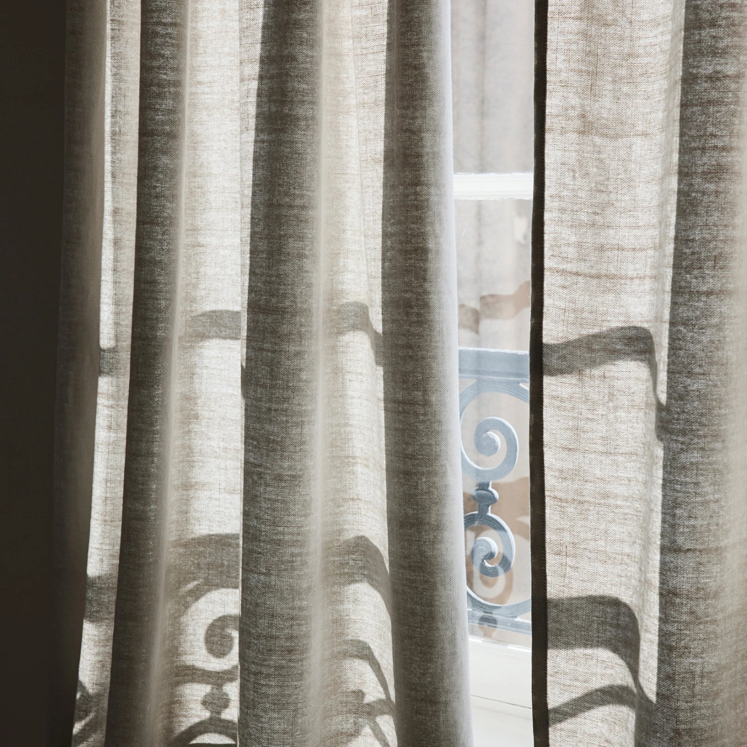 Le rideau à œillets Aubin gris pierre en 100% lin est inspiré par l’esprit réconfortant d’une maison de famille ouverte à la nature. Son tissu, à la texture dense, évoque une atmosphère à la fois chaleureuse et naturelle.