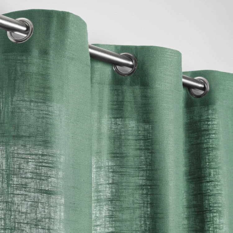Le rideau à œillets Bellavista vert laurier crée une ambiance décontractée grâce à sa matière et son tombé souple. Ses fibres, incluant 25% de lin, se mêlent dans un tissage flammé qui lui apporte la touche naturelle que l’on adore.