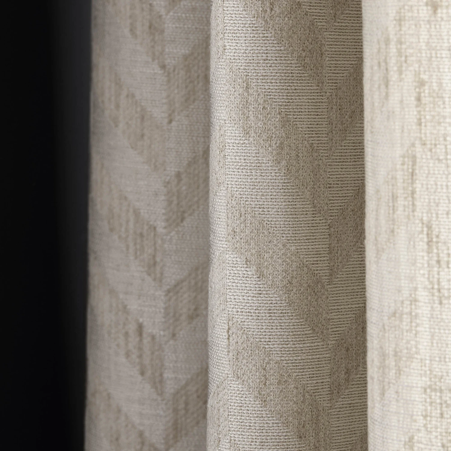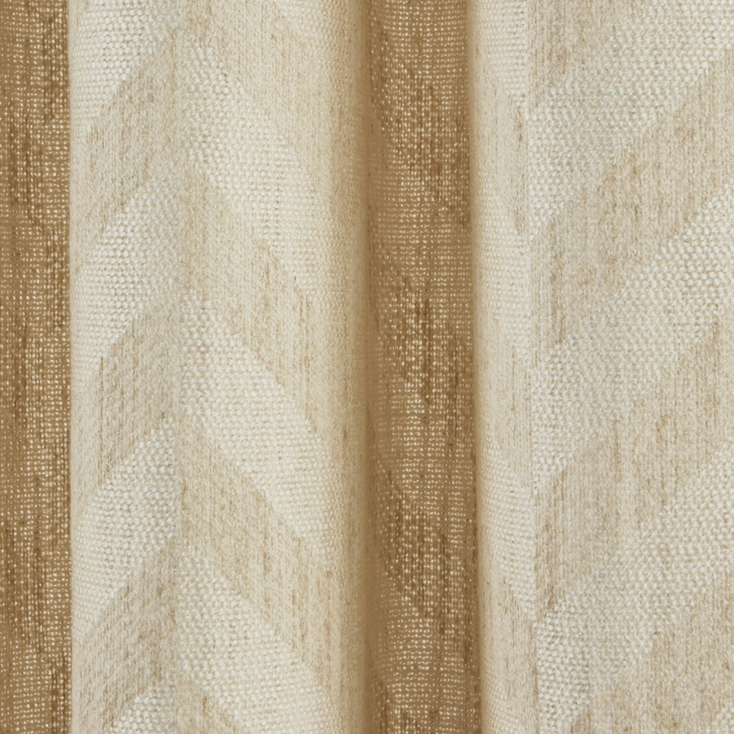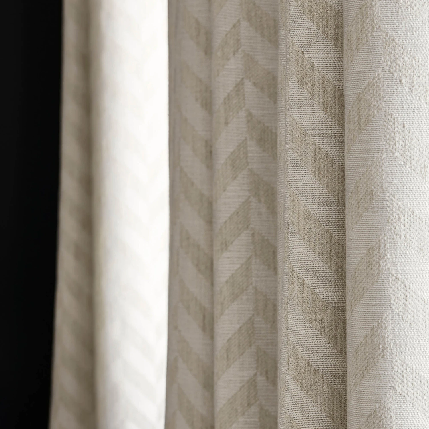 C’est dans la beauté du tissage au style naturel que se dessine un élégant chevron XXL. L’assemblage des textures aux fils méchés forme le motif graphique tout en subtilité et donne à ce rideau à oeillets un tombé parfait.