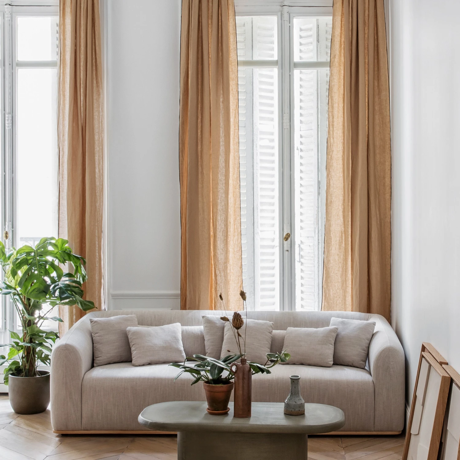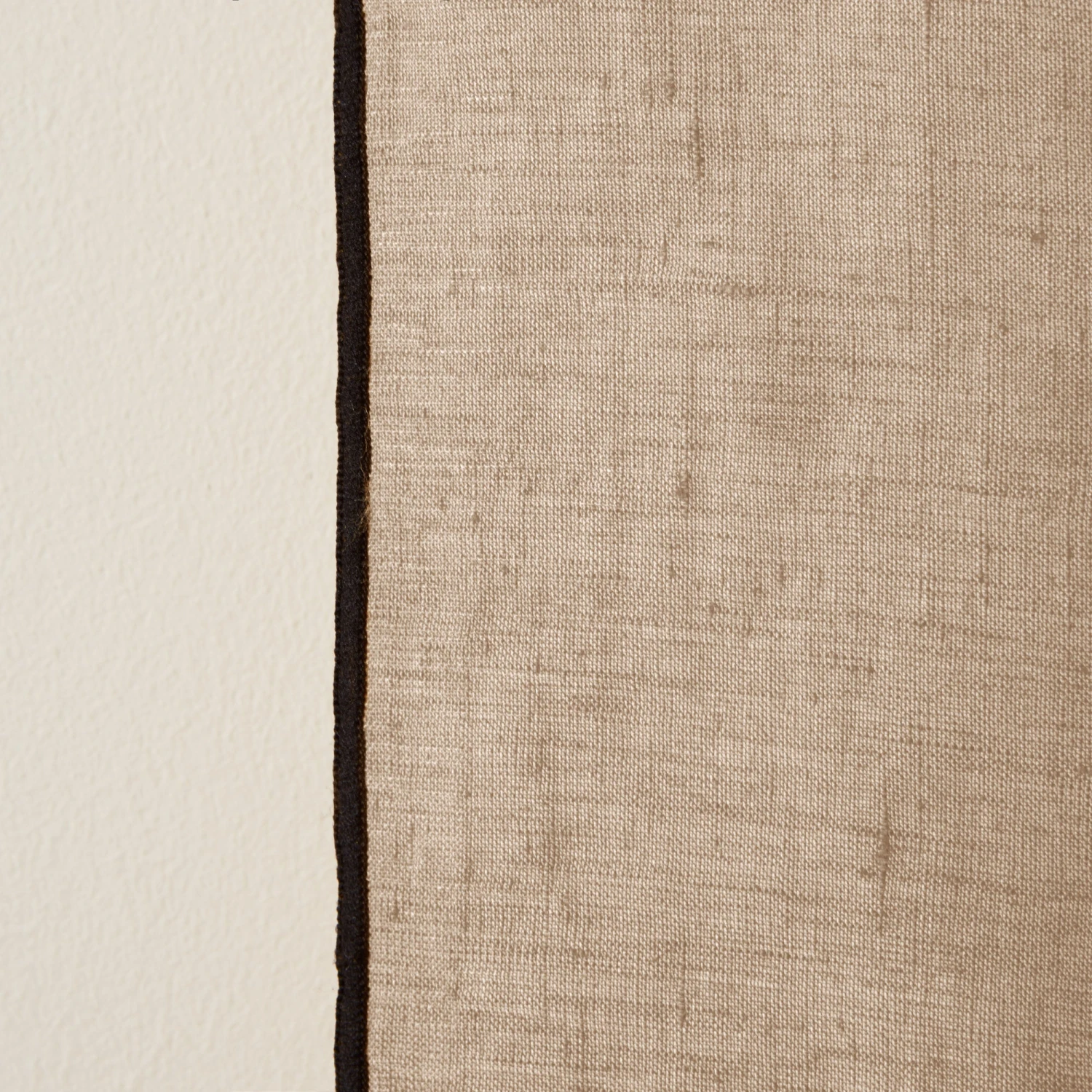 Le rideau à oeillets noirs Carlina sable et bourdon noir est beau par son évidente simplicité. Réalisé avec des œillets noirs et souligné d’un point bourdon noir, ce rideau en lin léger s’installe facilement sur vos fenêtres et les habille d’une ondulation délicate au charme bohème.