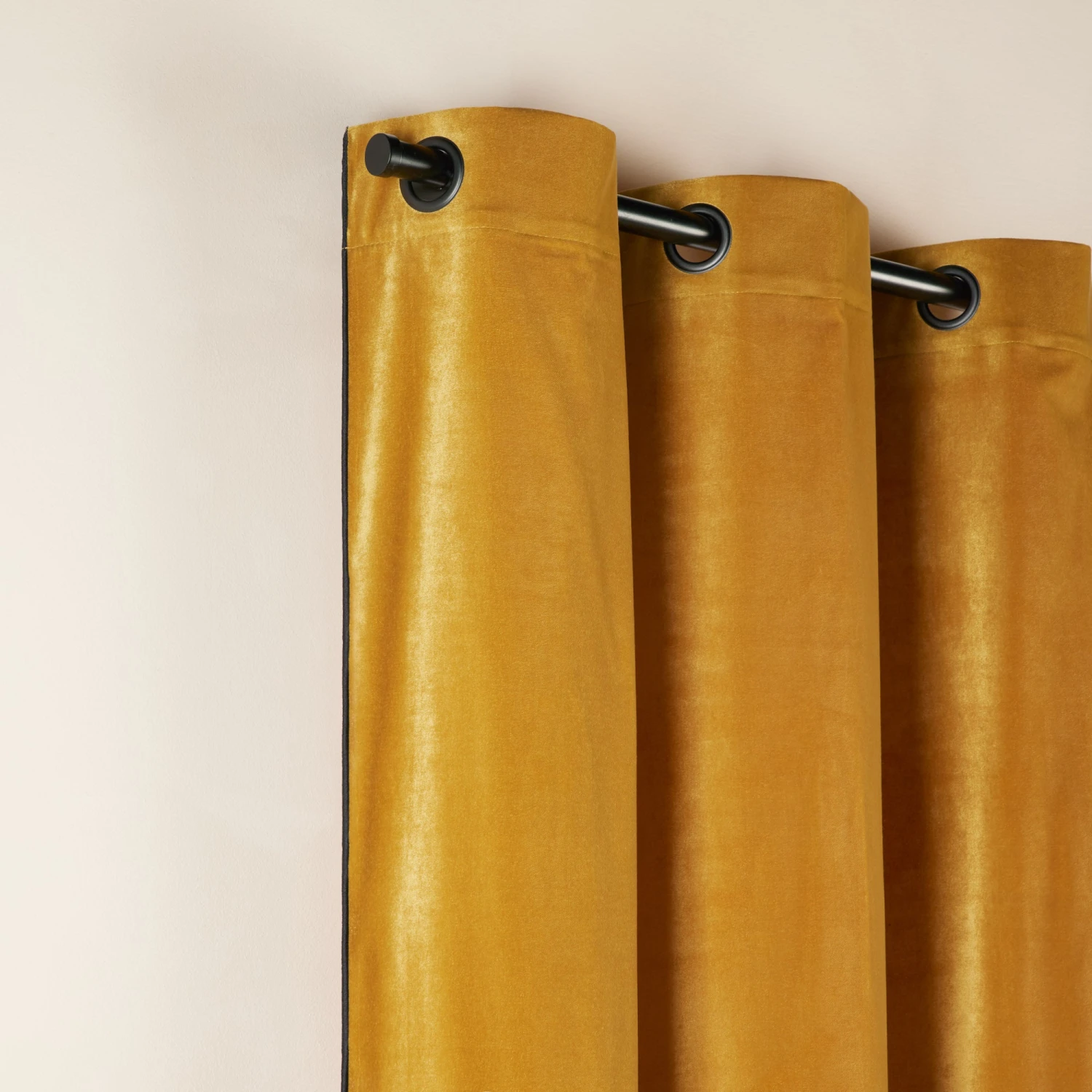 Rideau à Oeillets Noirs DARIO Ocre Et Bourdon Noir