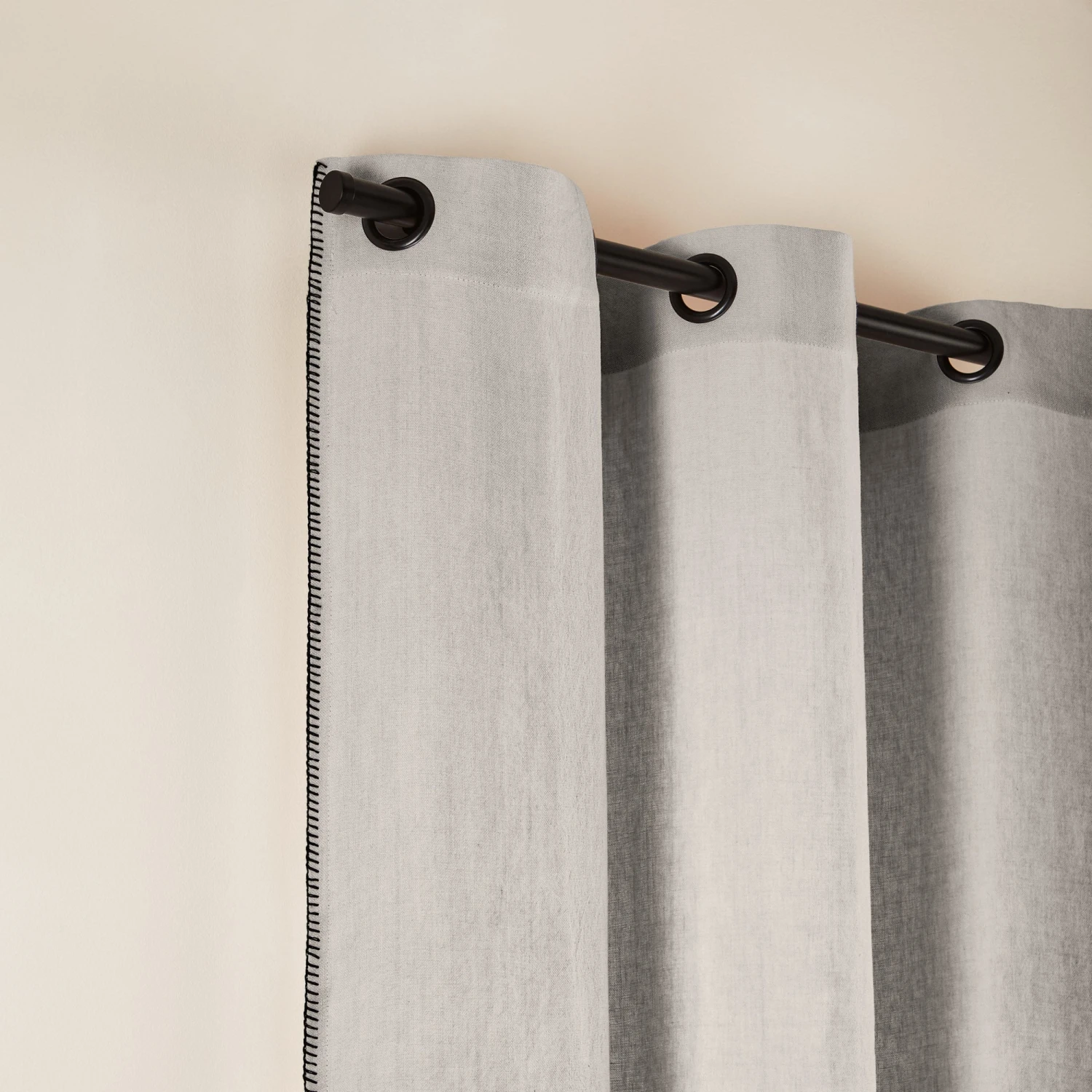 Rideau à Oeillets Noirs NINO Ficelle Et Feston Noir