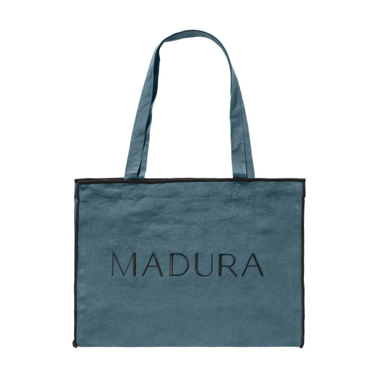 Le grand sac Carlina en lin lavé bleu pétrole est un compagnon idéal pour l’été.