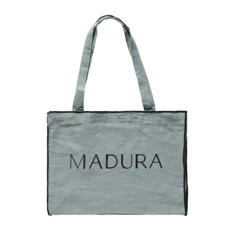 Le grand sac Carlina en lin lavé vert de gris est un compagnon idéal pour l’été.