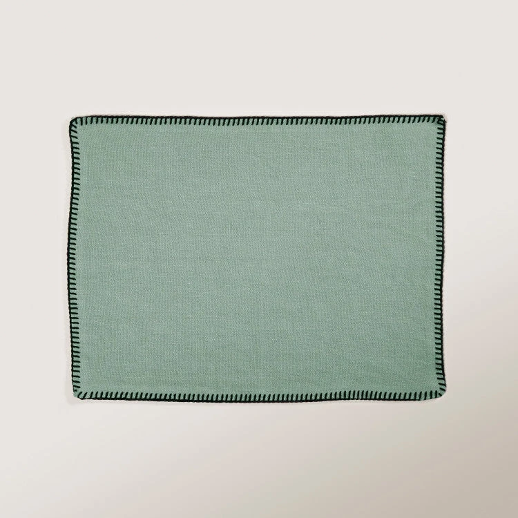 Set De Table NINO Vert De Gris Et Feston Noir