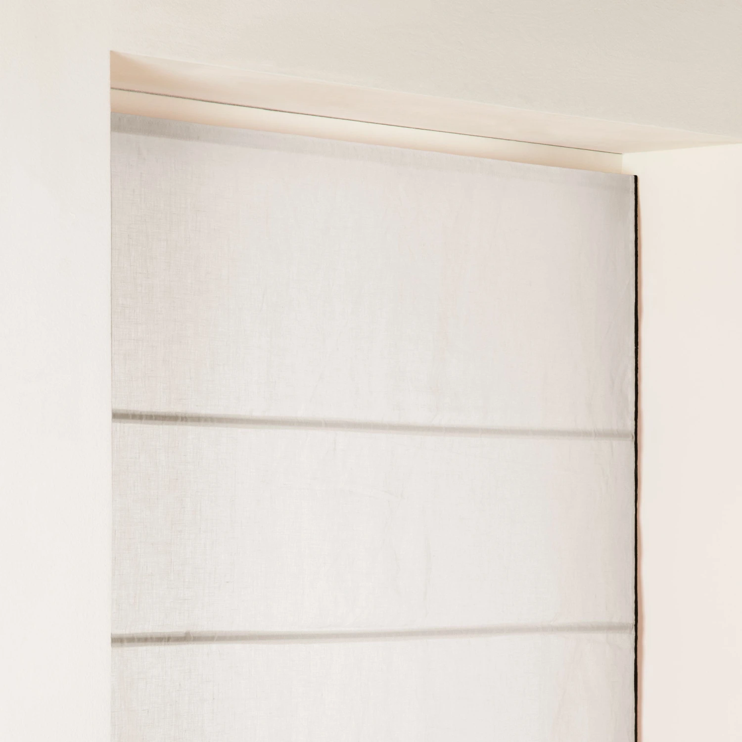 Ce store bateau beige clair vous séduira par son point bourdon noir délicat qui lui confère une note graphique et élégante. On adore aussi son lin souple et doux.