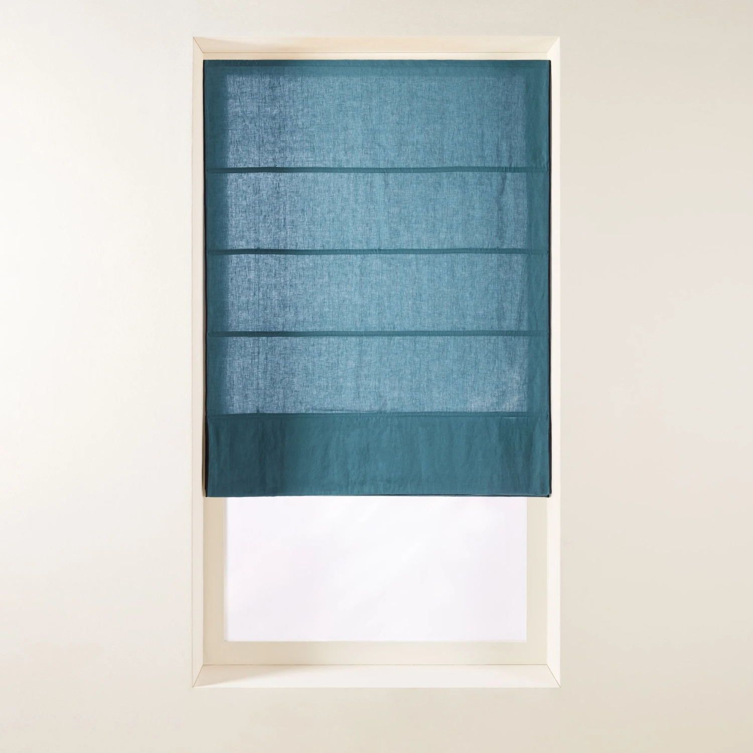Ce store bateau bleu pétrole vous séduira par son point bourdon noir délicat qui lui confère une note graphique et élégante. On adore aussi son lin souple et doux.