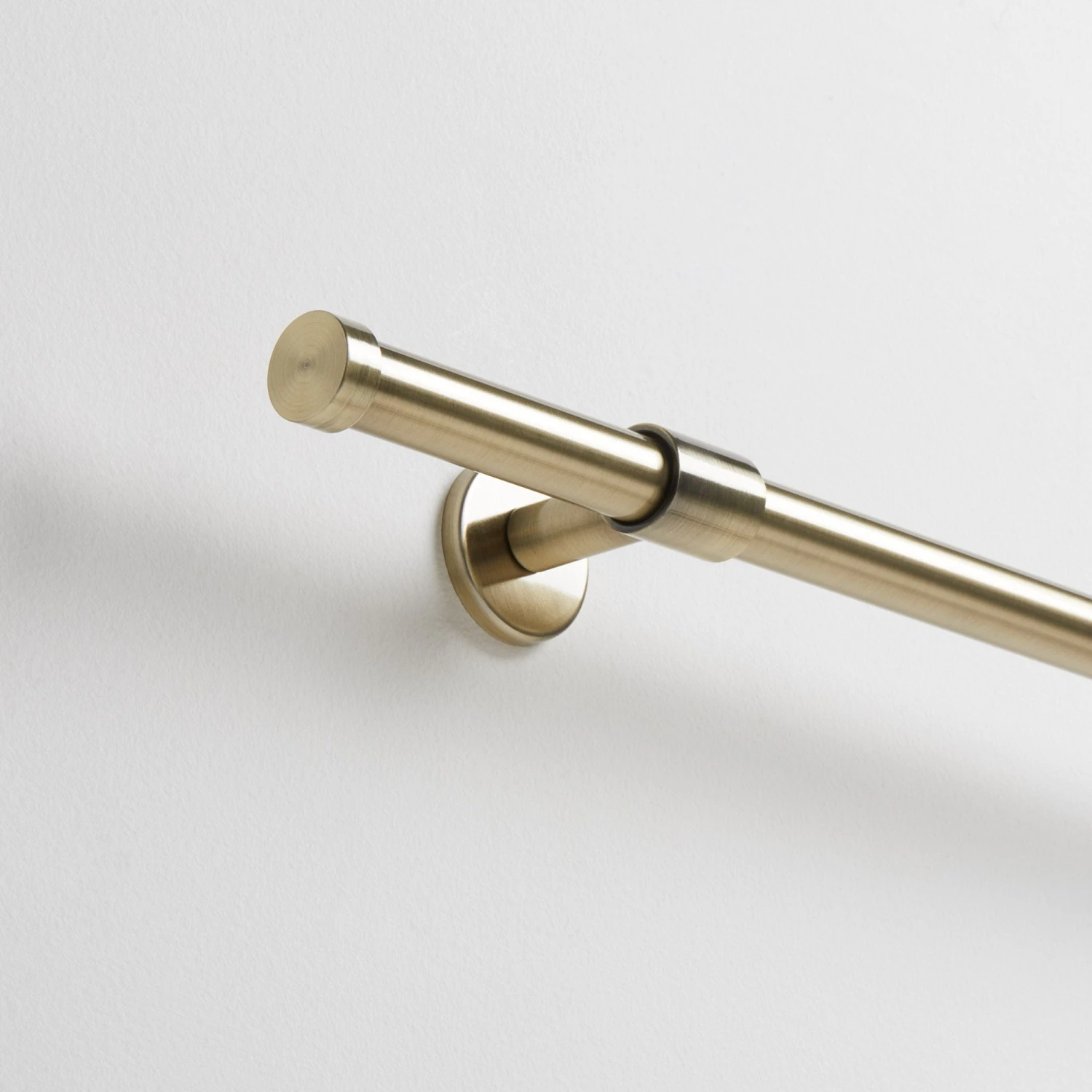Accroché au mur ou au plafond, ce support lorgnon Alma au coloris laiton permet l’installation d’une tringle à rideaux, auto bloquée par une vis.