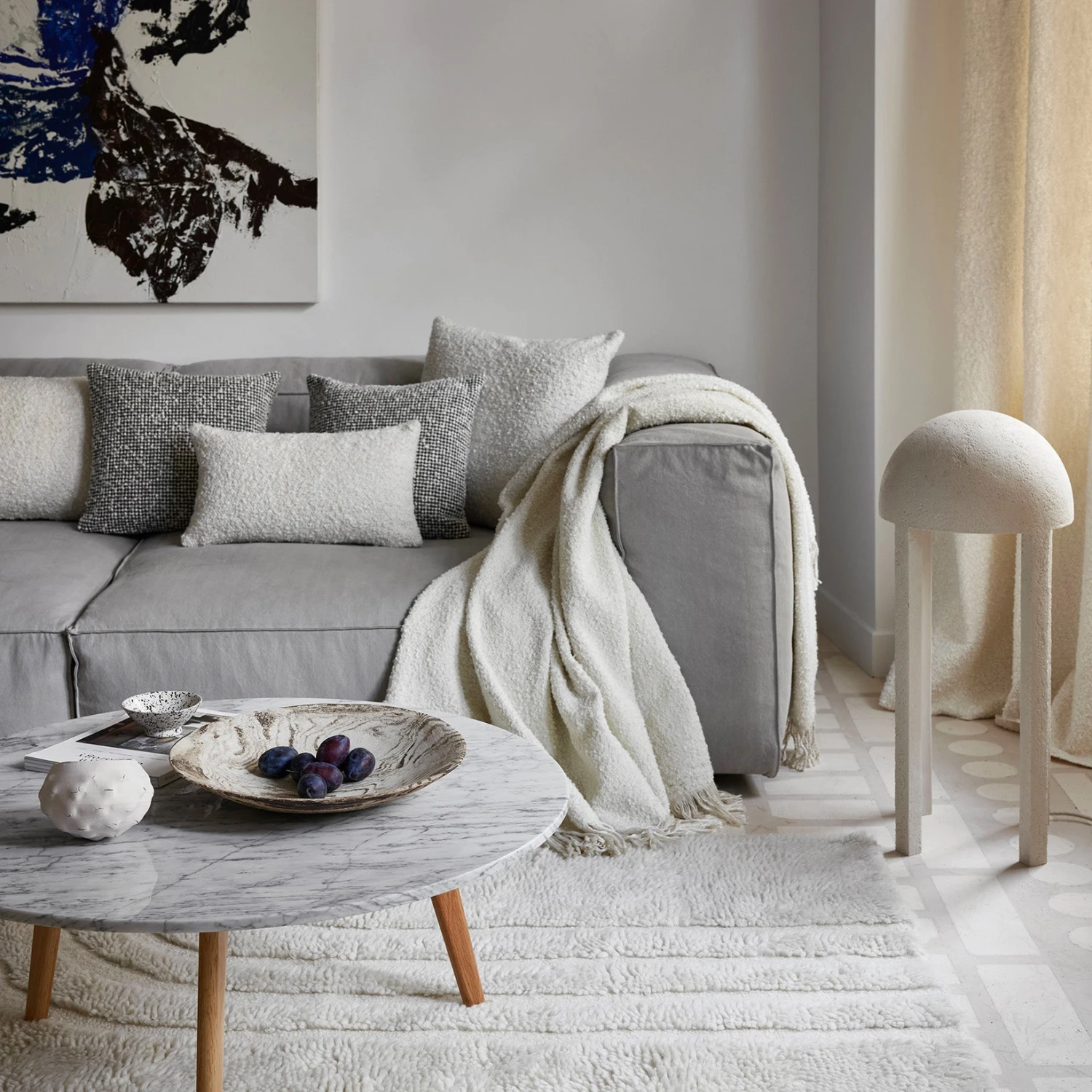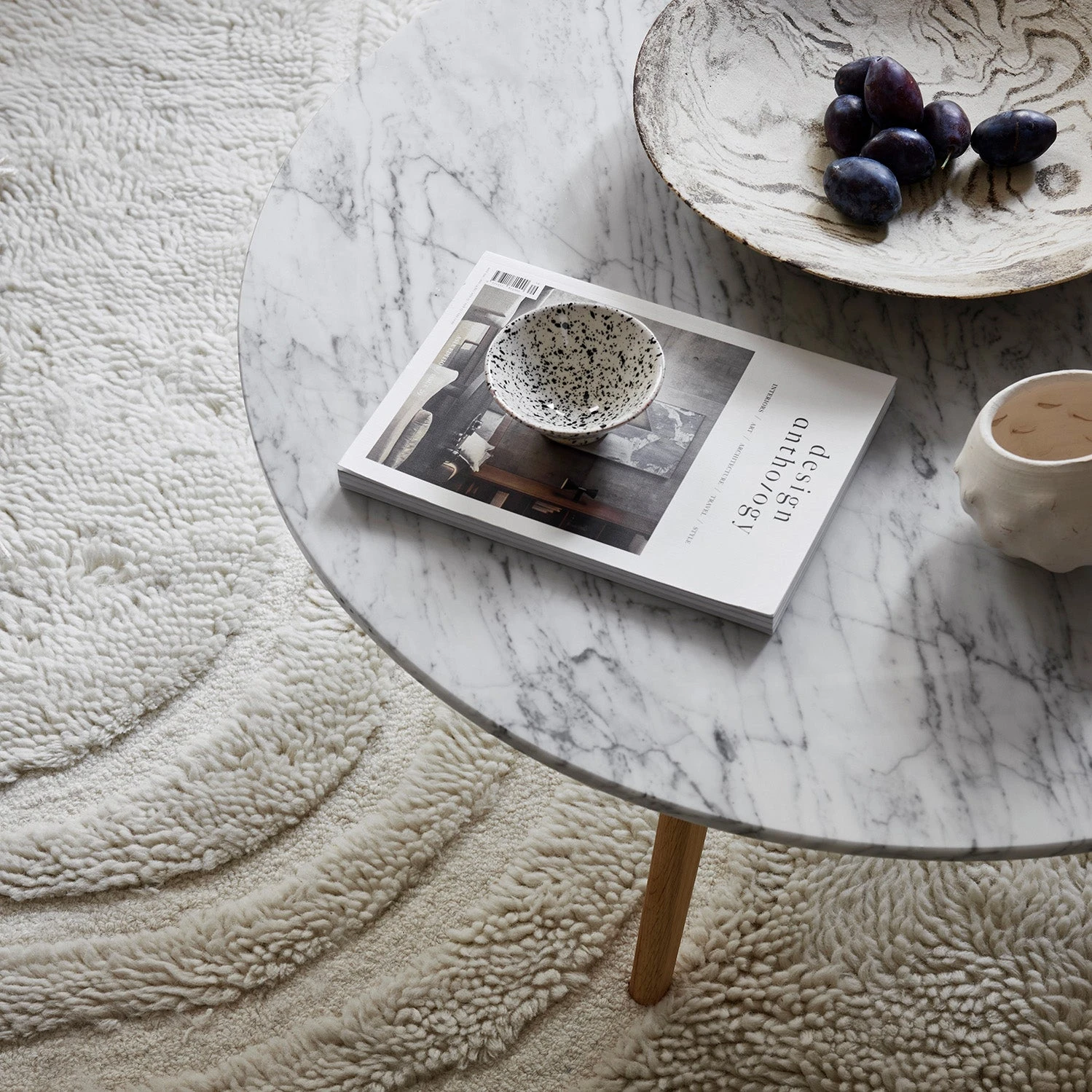 Ce que l’on adore dans la table basse Lara, c’est son jeu de matières : marbre blanc pour son plateau et piètement en chêne clair.