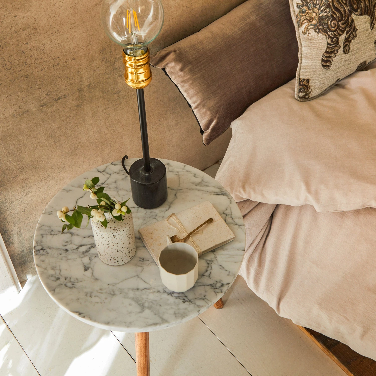 Table D’appoint LARA Bois Et Blanc De Carrare