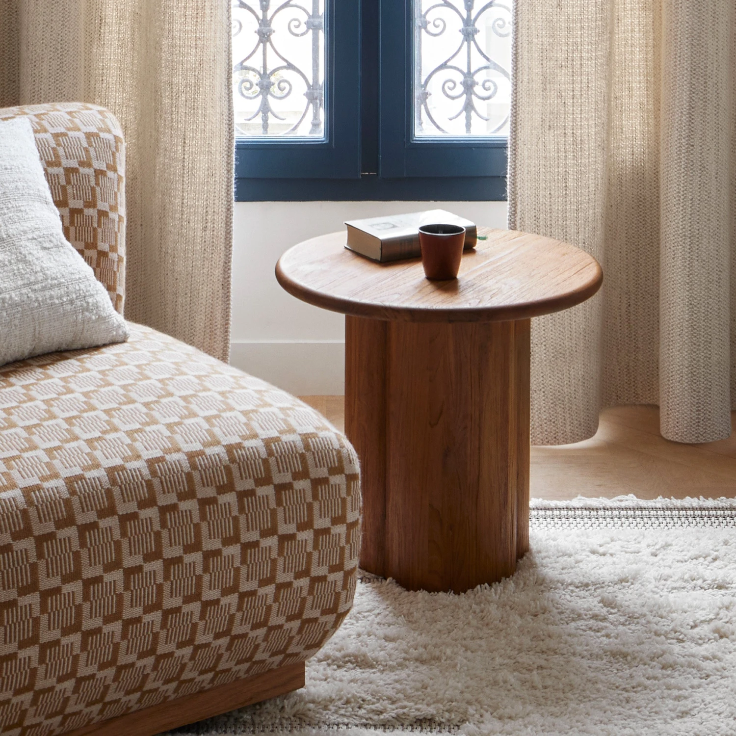 Cette table d’appoint a tout pour séduire par son charme et son authenticité. Nous aimons particulièrement sa forme totémique : un plateau rond posé sur un socle sculpté aux courbes organiques.