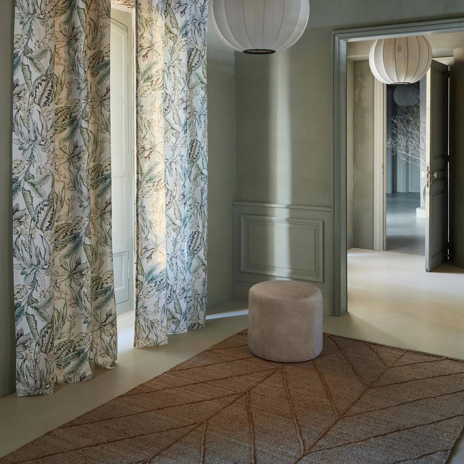 Le tapis rectangulaire Deeva est tissé en fibre de jute 100% naturelle et écologique qui apporte une vraie touche folk à notre collection.