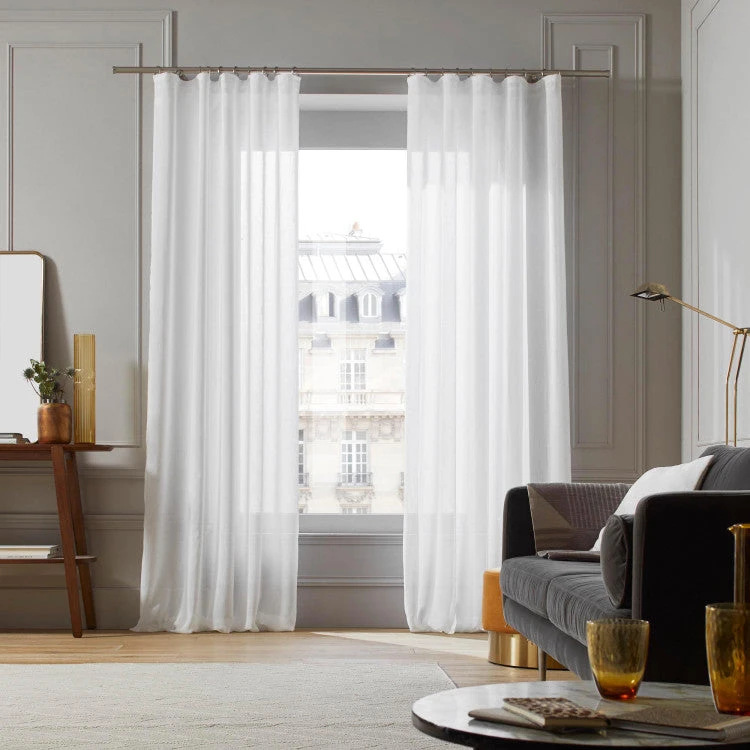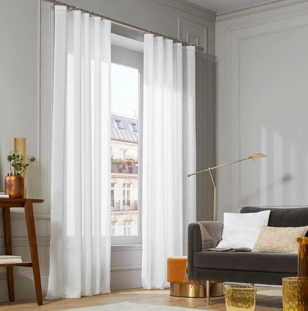 Le voilage Milos blanc offre un effet léger et naturel, tout en préservant votre intimité. Sa texture élégante, semblable au lin, tamise la lumière et crée une ambiance sereine qui invite à profiter du moment présent.