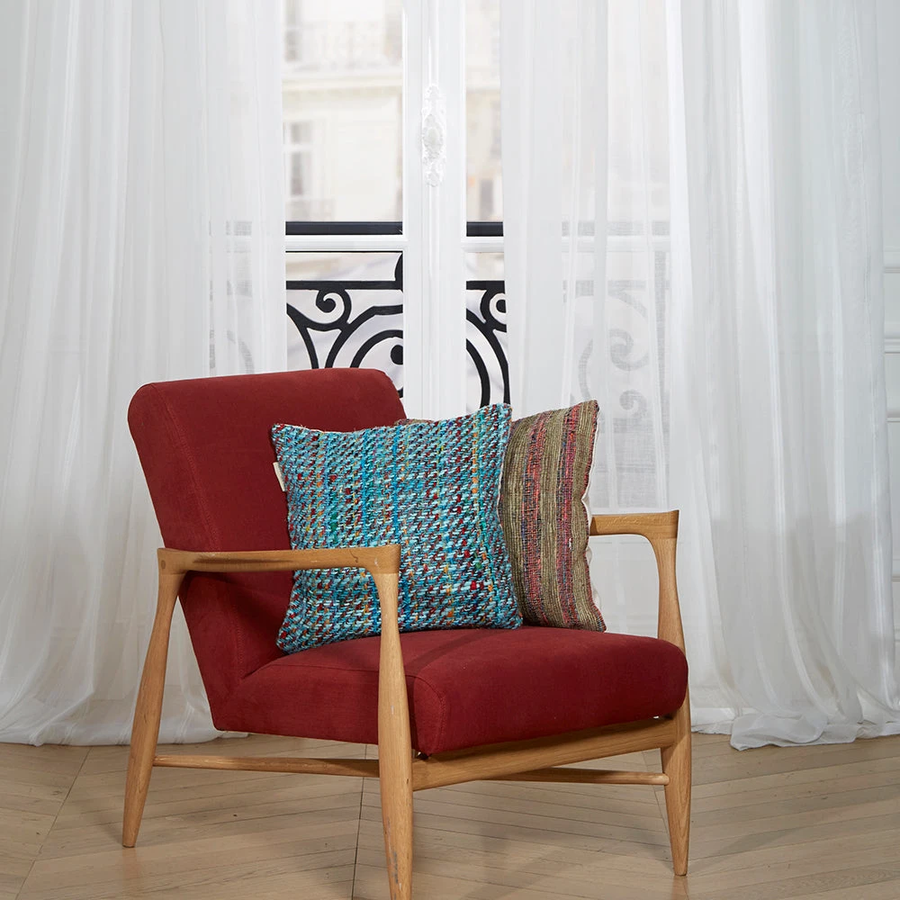 Jeu de contrastes et reliefs dans les textures, le voilage Santorini invite au voyage.