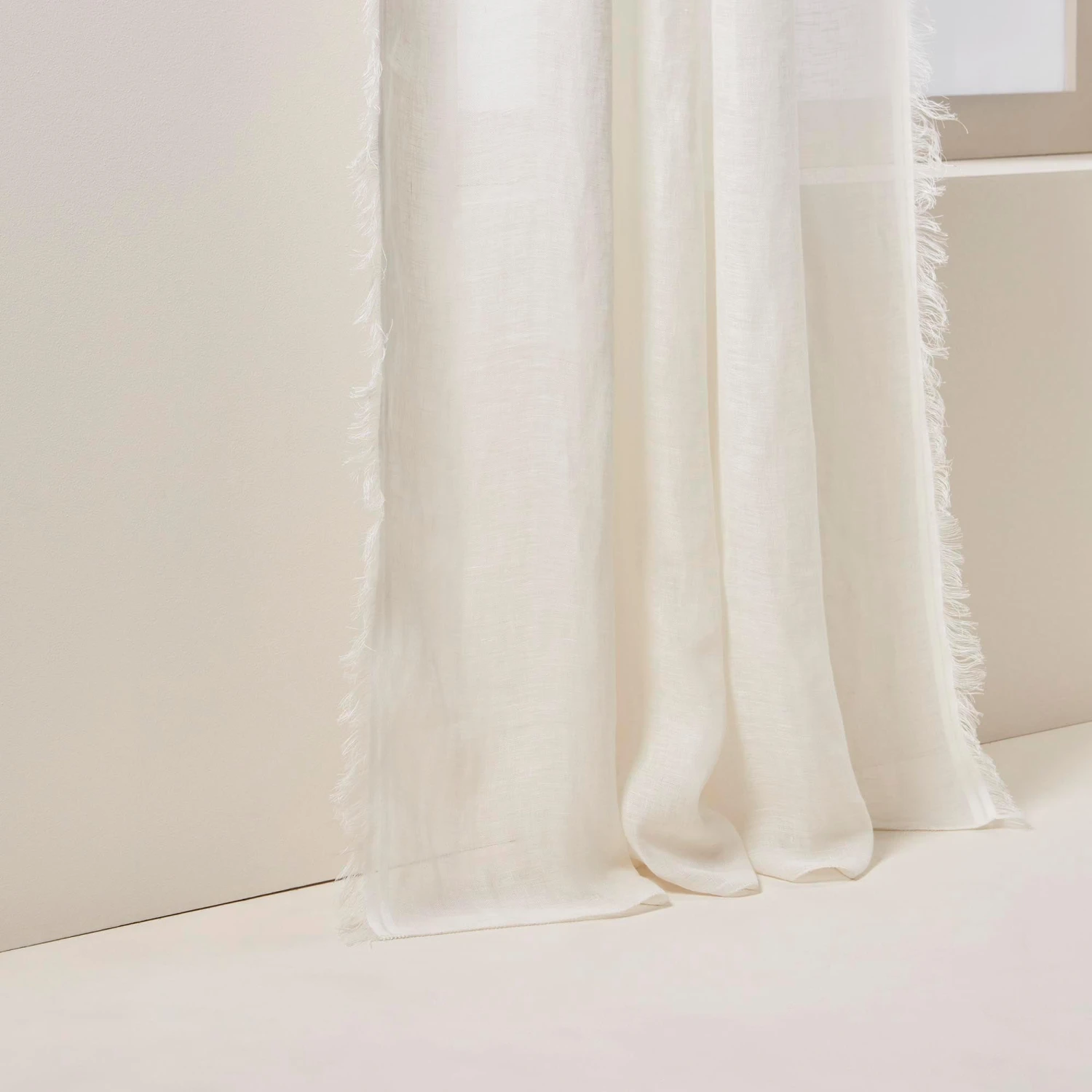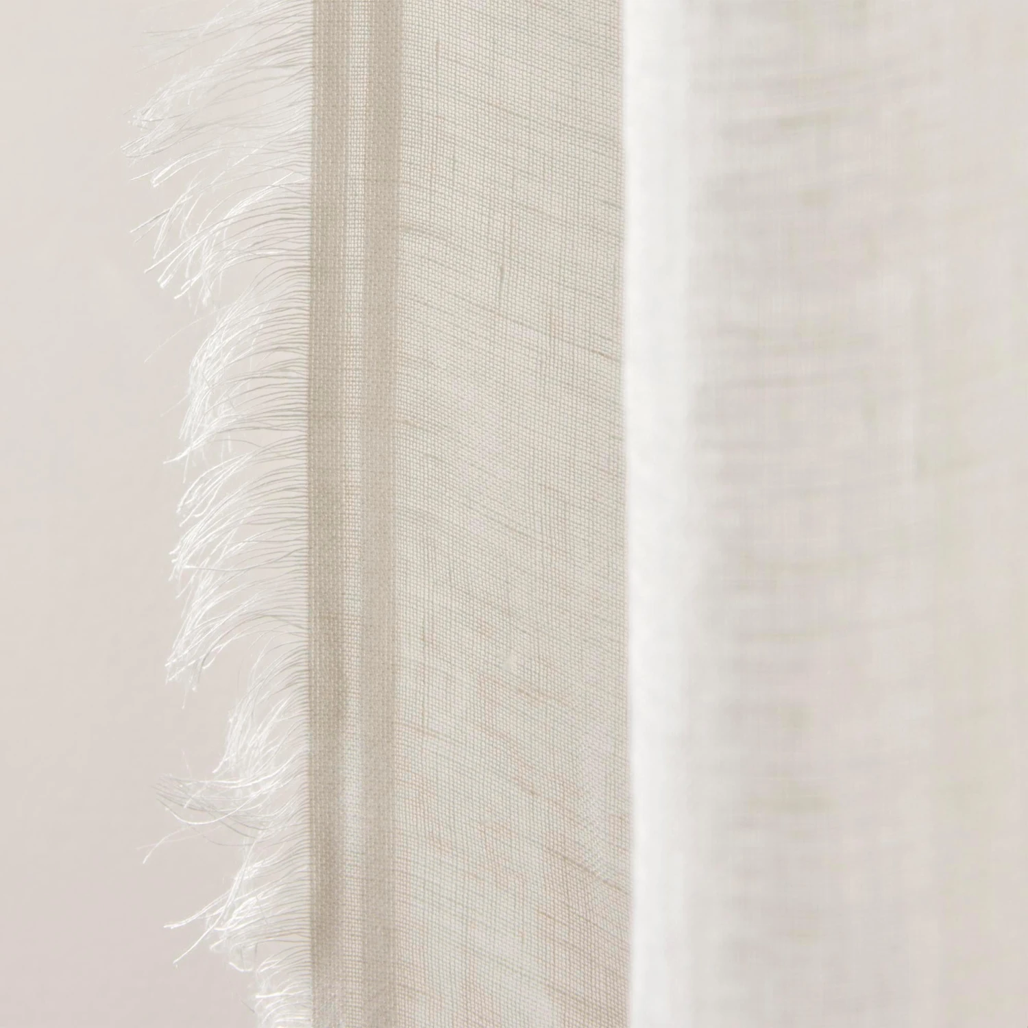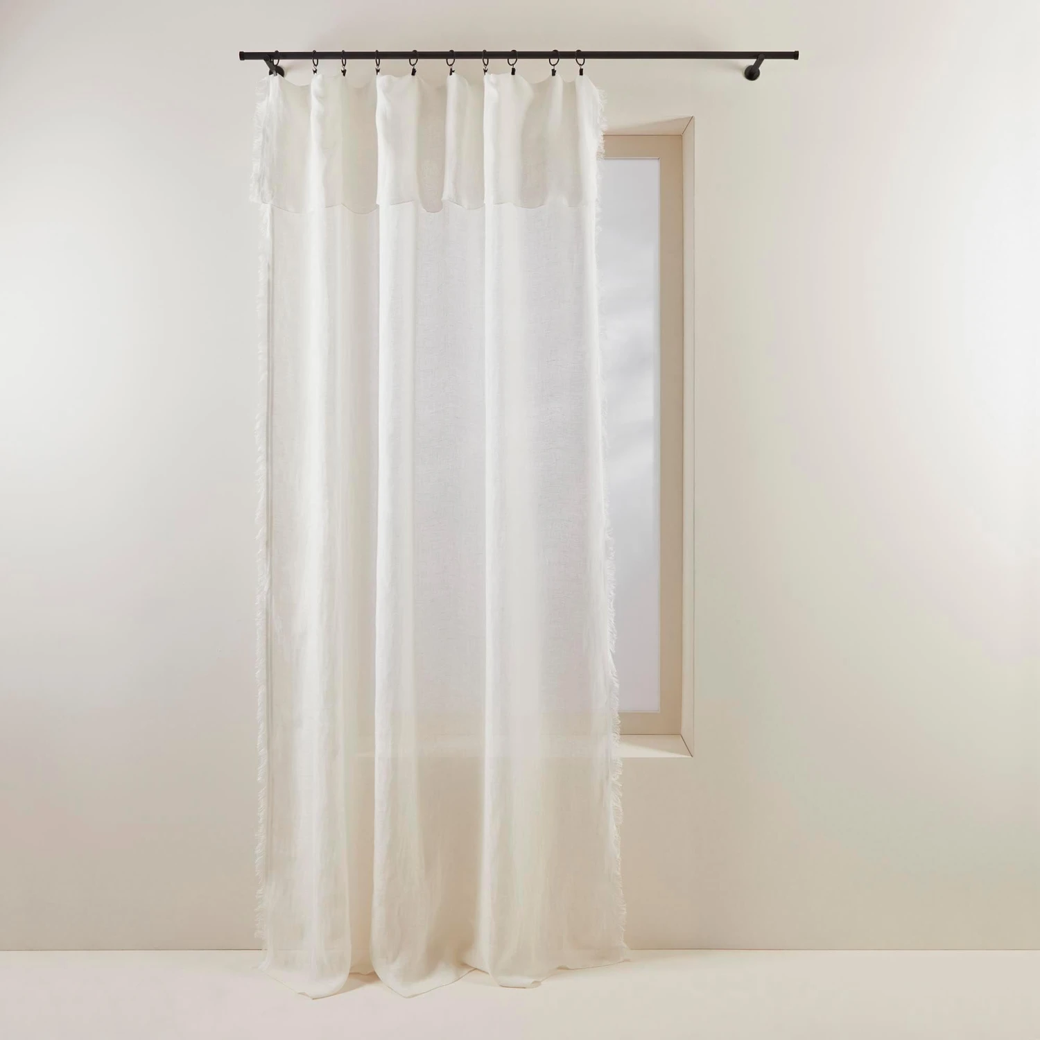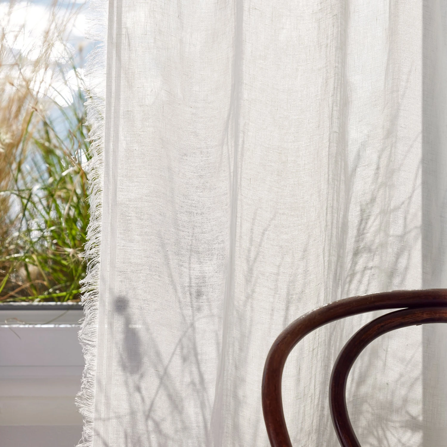 Bohème, léger comme l’air, le voilage Ikaria blanc albâtre en 100% lin semble tout droit venir d’Ibiza.