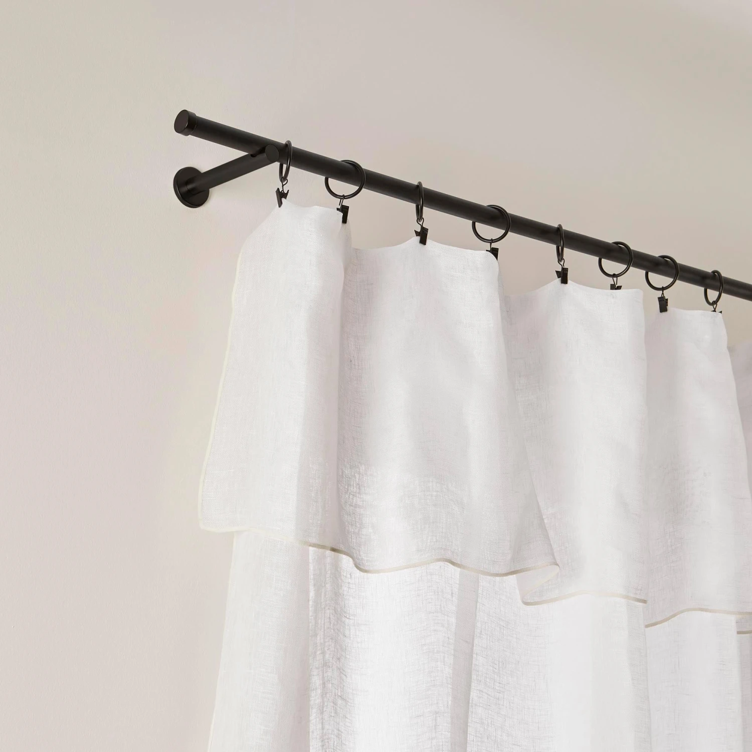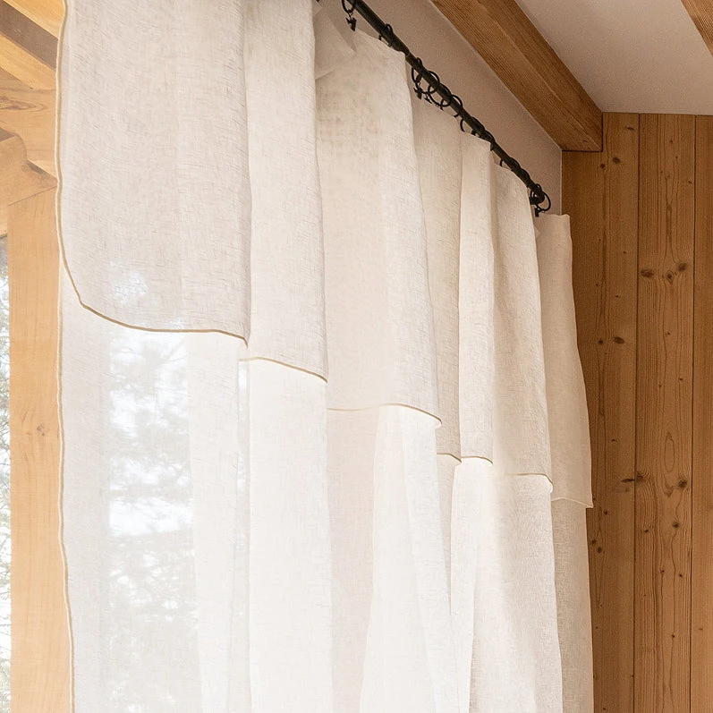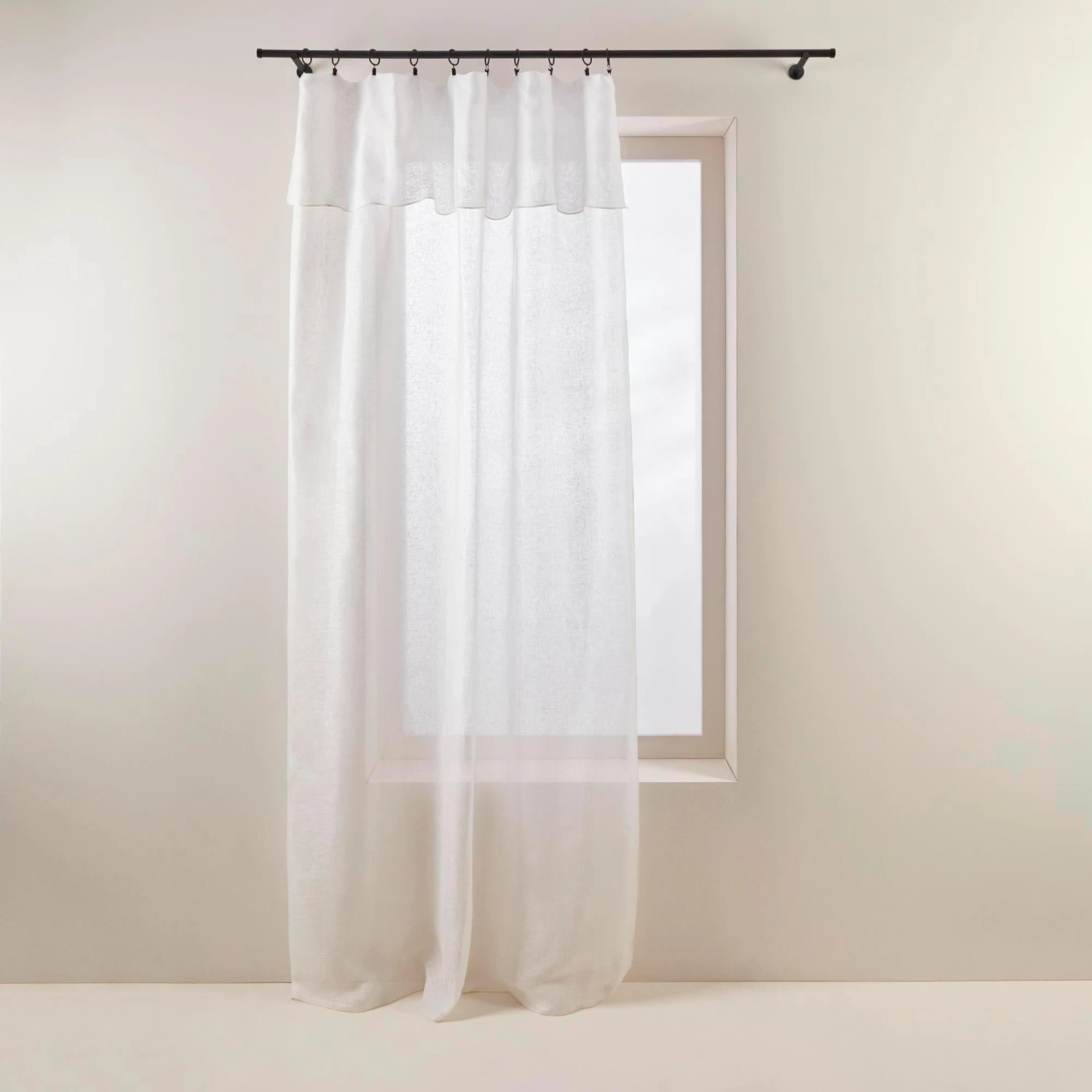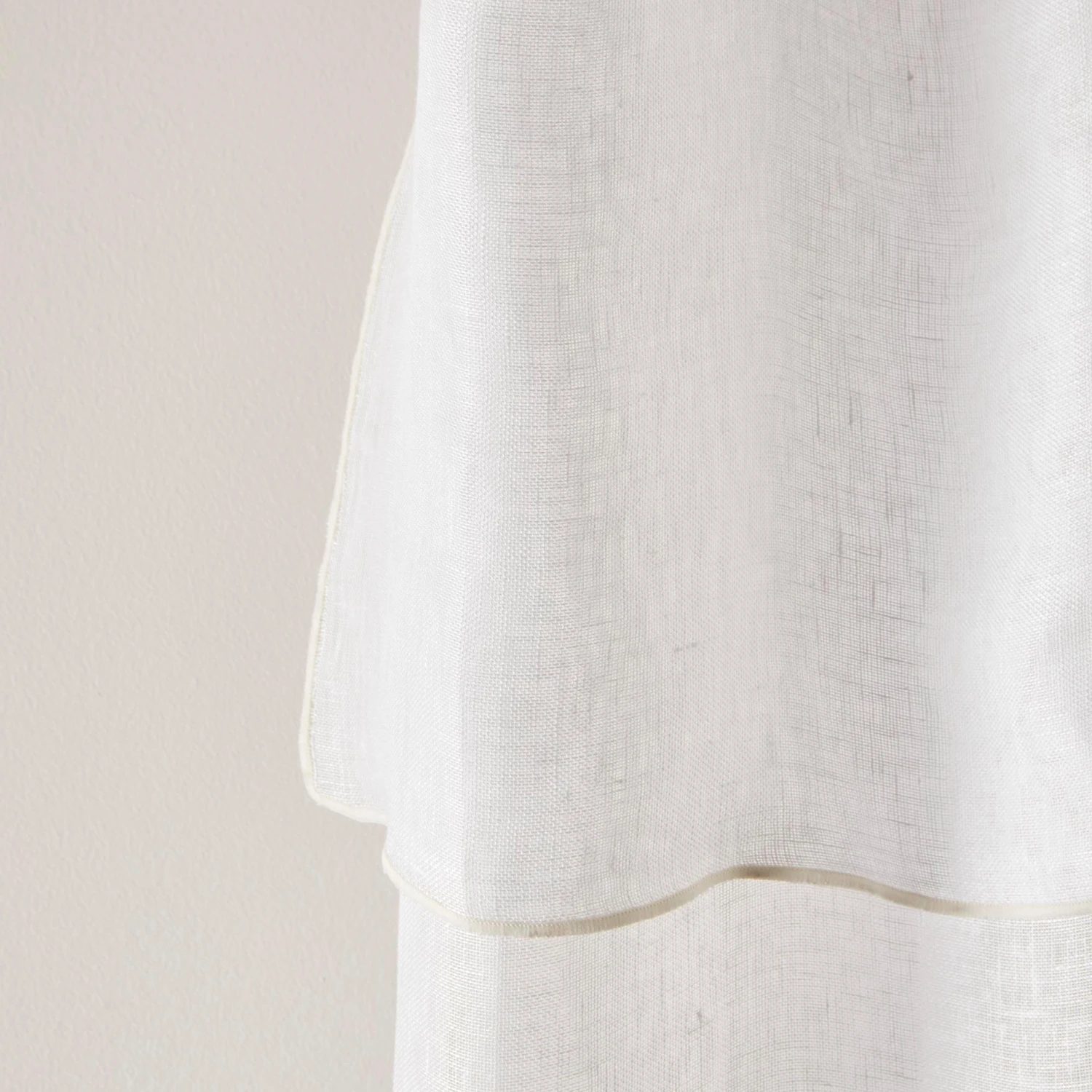 Léger et aérien, c’est en toute discrétion que le panneau Shadow en lin blanc pur au fini d’un point bourdon ivoire, se fond sur vos fenêtres.